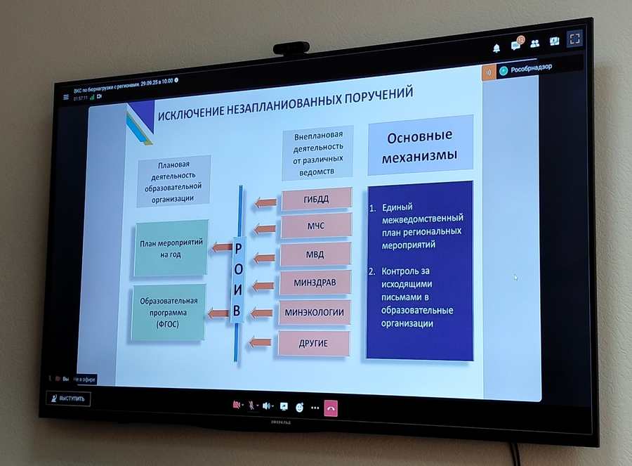 Глава Рособрнадзора Анзор Музаев обратил особое внимание участников совещания на механизмы работы (ведомственные чаты для обеспечения обратной связи, организационные структуры и формы работы) и организацию в каждом регионе системы исключения незапланированных поручений. Руководствуясь единым межведомственным планом региональных мероприятий и осуществляя контроль за исходящими письмами в образовательные организации, региональные органы исполнительной власти в сфере образования должны стать барьером для внеплановой деятельности различных ведомств.