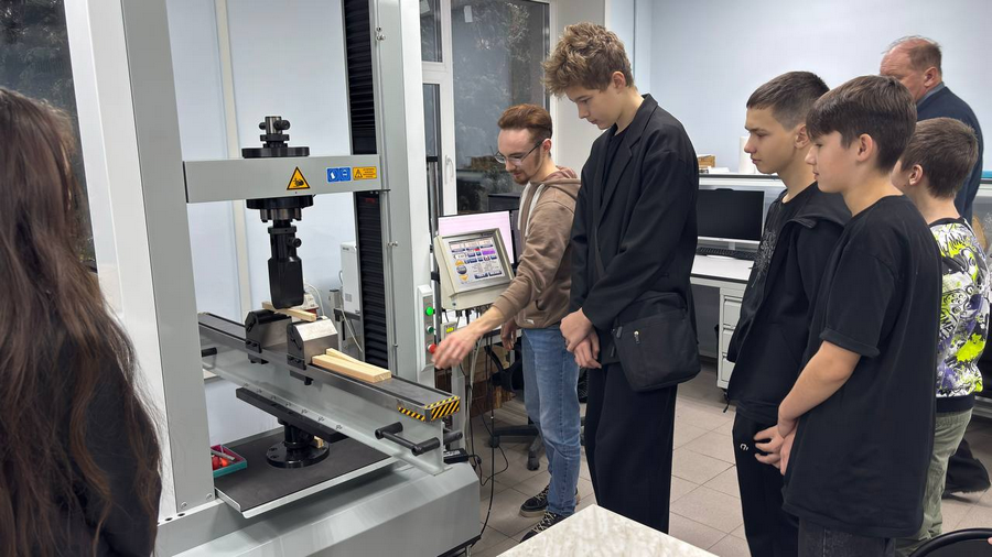 В Волгатехе старшеклассники посетили строительную лабораторию, в которой протестировали прочность металлической арматуры и деревянного бруска, освоили работу с тепловизором, а также в лаборатории геодезии и картографии провели замеры с помощью электронных тахеометров.