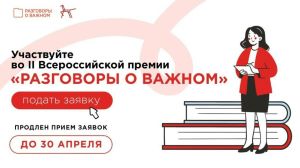 До 30 апреля продлён приём заявок на участие в премии «Разговоры о важном»!