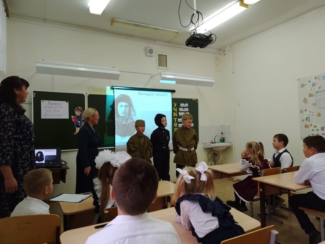 Ж.С.Тихомирова и А.С.Шереметьева представили интегрированный урок по окружающему миру и музыке "Учитель-профессия на все времена" со всеми учащимися начального звена. Занятие посвящено предстоящему профессиональному празднику.