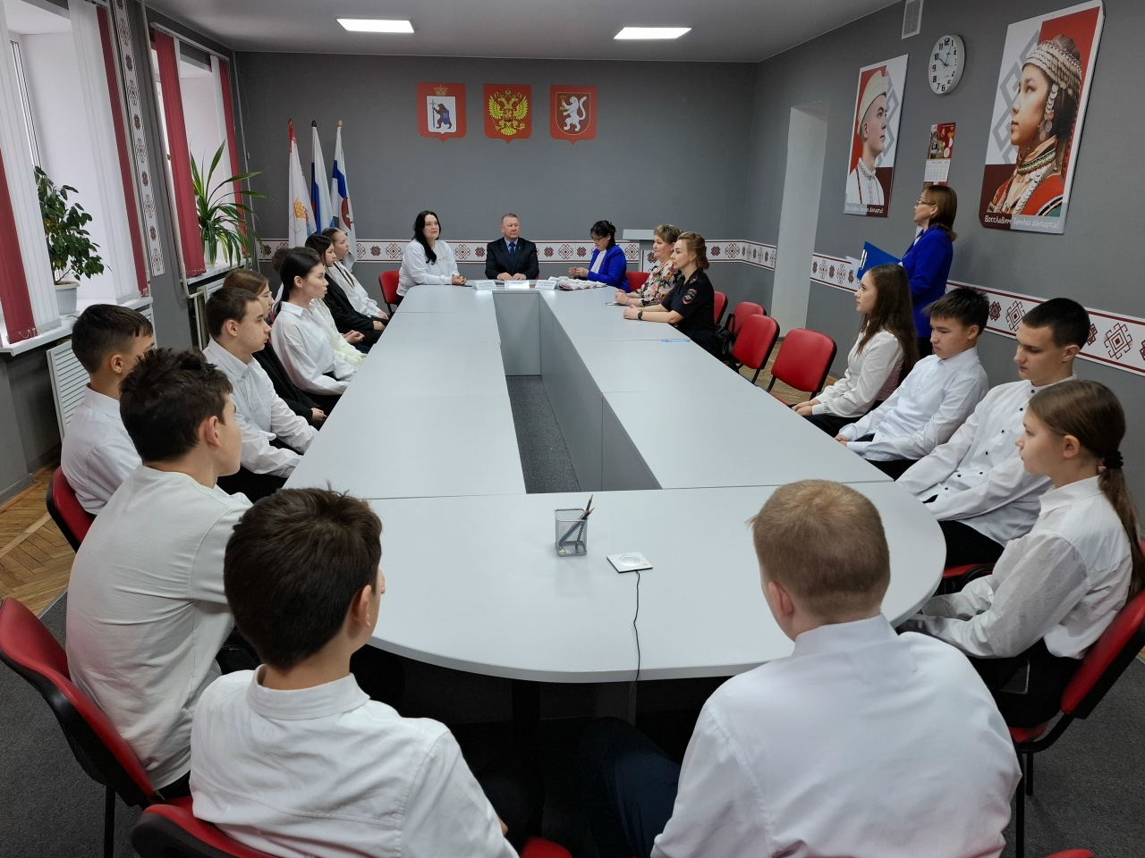 С важным событием в жизни подростков поздравили глава Горномарийского муниципального района Евгений Смелов, глава администрации Горномарийского муниципального района Наталья Арганякова, начальник отделения миграционной службы МО МВД России «Козьмодемьянский» Лидия Селина и координатор местного отделения «Движение Первых» Ольга Калашникова.