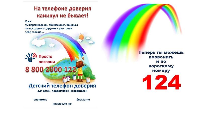 Появилась возможность экстренной психологической помощи по детскому телефону доверия 8 800 2000 122. С мобильных телефонов короткий номер 124. Плакаты по данной тематике размещены в разделе