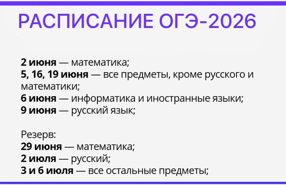 Даты основного периода проведения основного государственного экзамена в 2026 году: