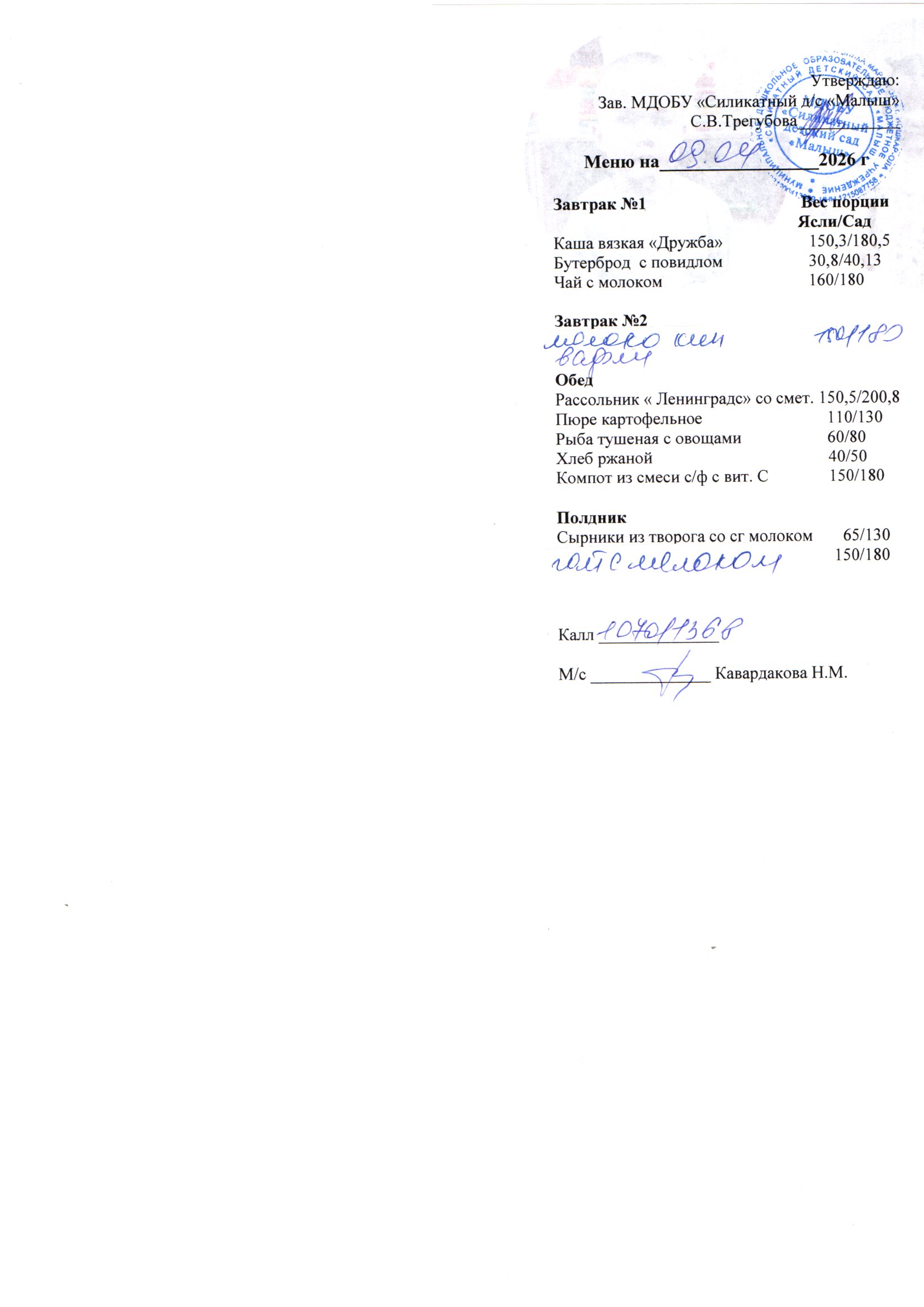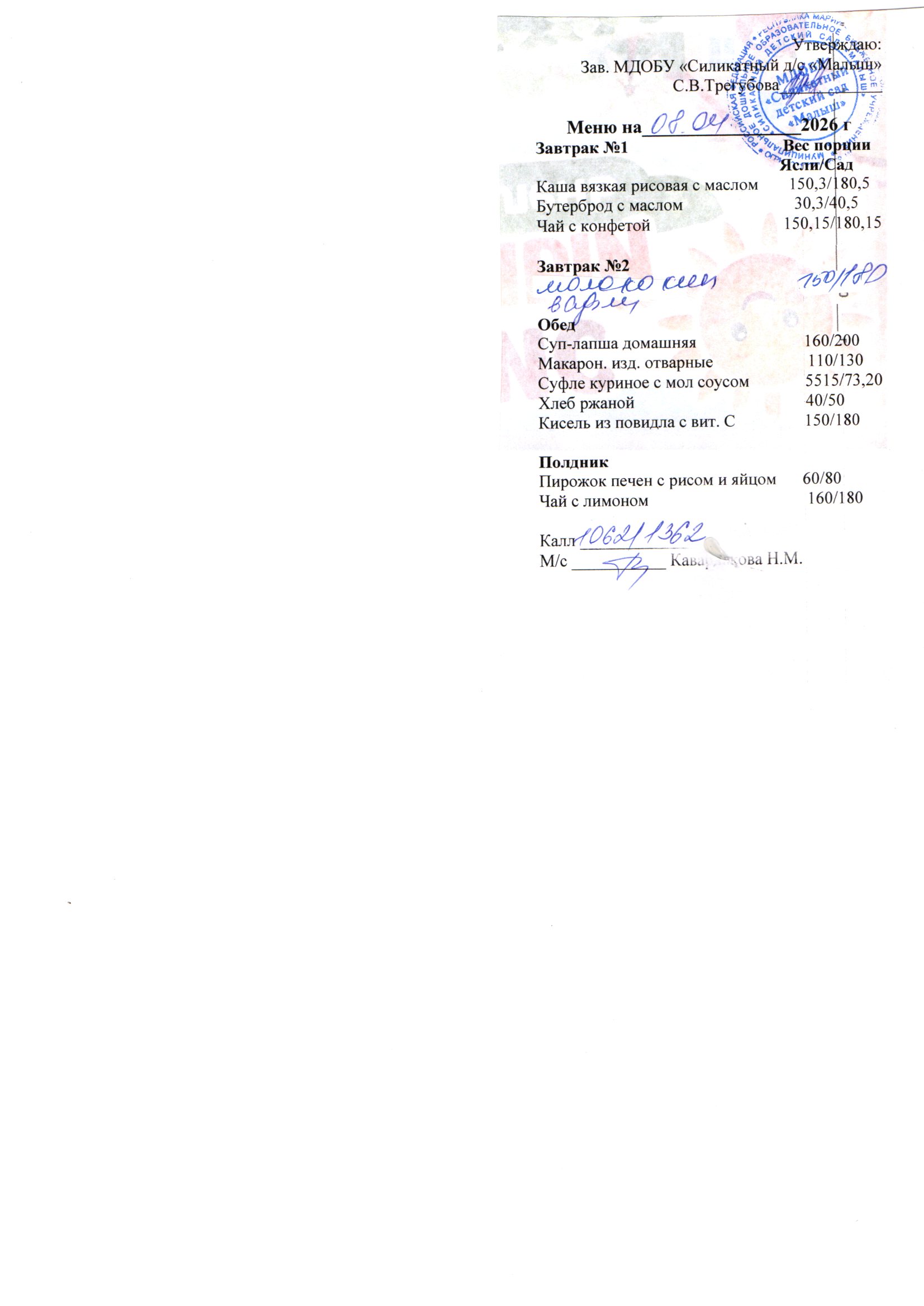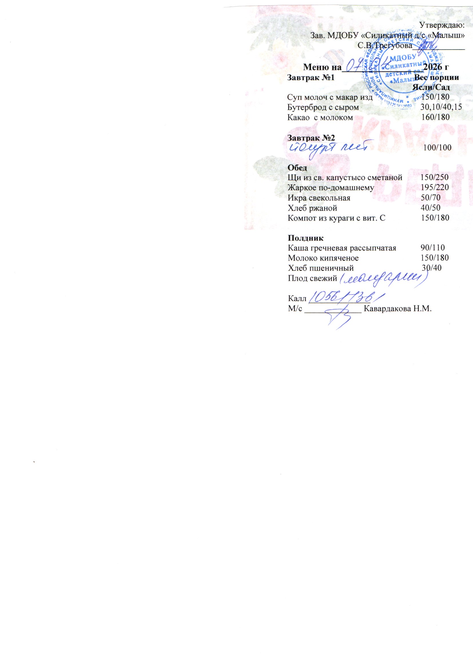 МДОБУ «Силикатный детский сад «Малыш» > Меню