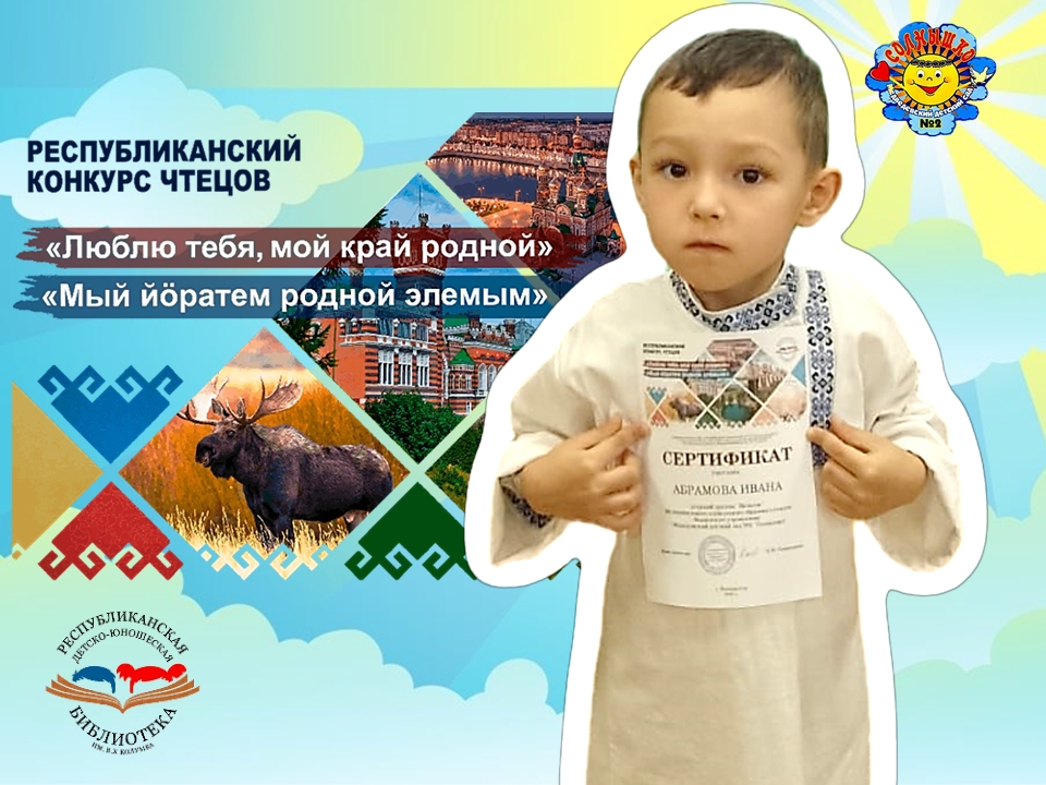 Абрамов Иван из группы "Василёк" принял участие в Х Республиканском конкурсе чтецов «Мый йӧратем родной элемым» («Люблю тебя, мой край родной»)