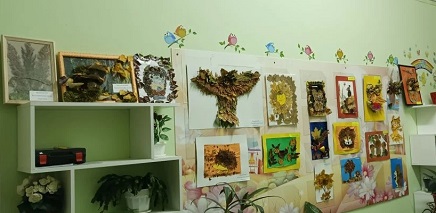В период золотой поры в детском саду прошла выставка детских работ «Фантазии из листьев - мастерим картины из природного материала».