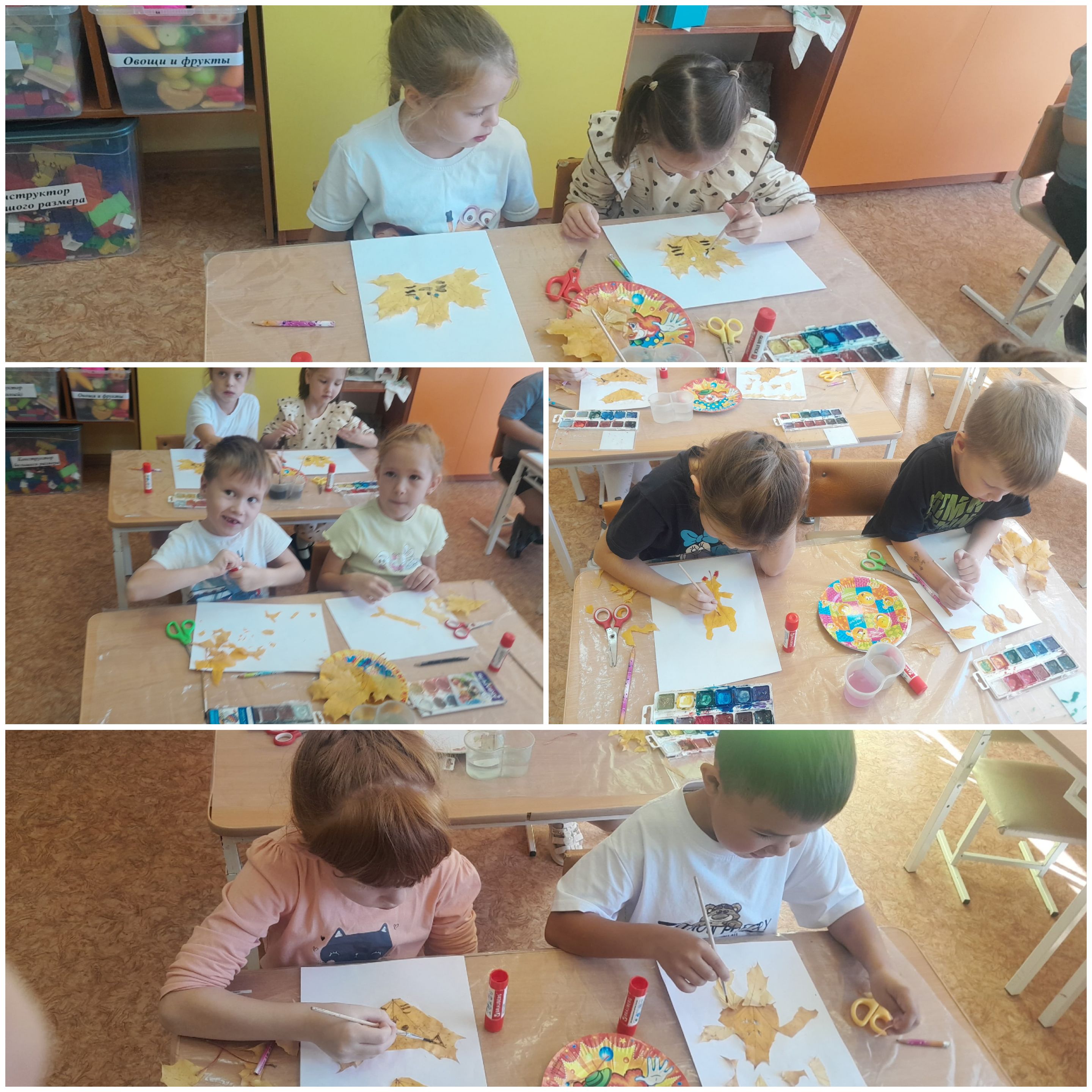 : Аппликация из осенних листьев - увлекательное занятие, которое нравится всем детям. Дети подготовительной группы "Солнышко" создают собственные осенние картины из листьев, собранных на территории детсткого сада!