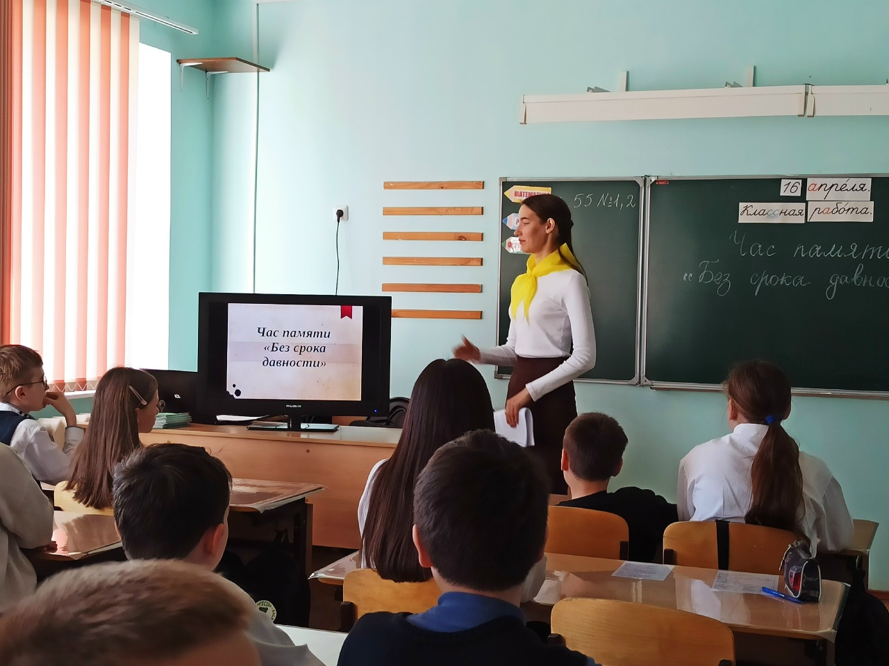 В преддверии Дня памяти жертв геноцида советского народа нацистами и их пособниками, в нашей школе был проведен час памяти «Без срока давности».
