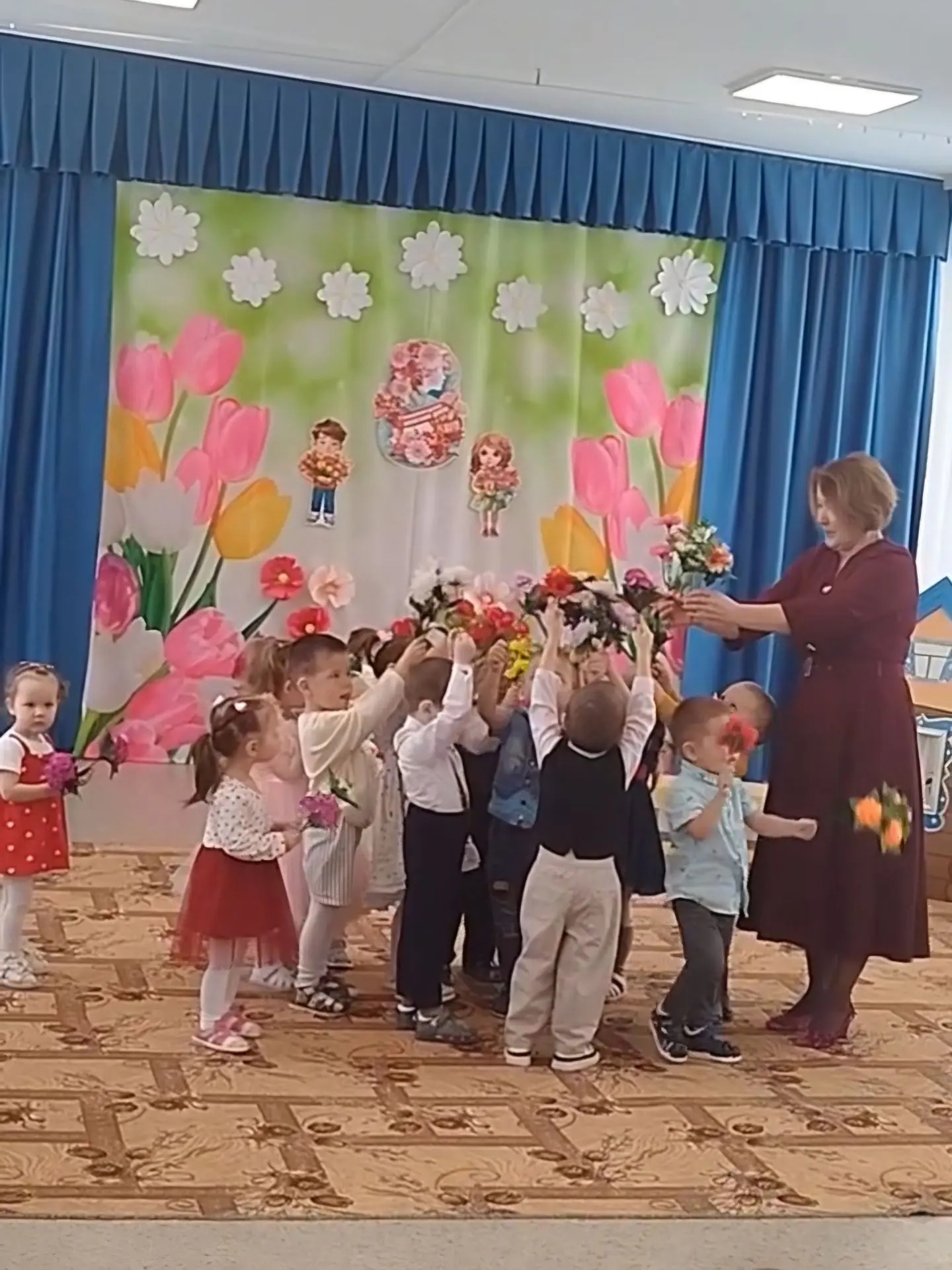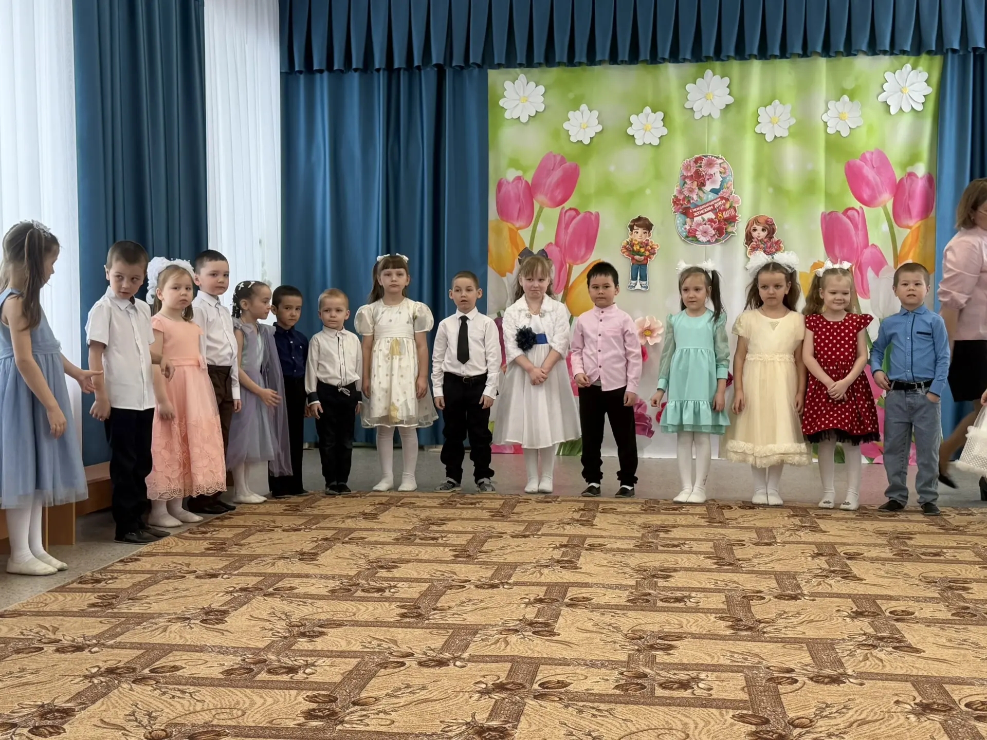 Наступила долгожданная весна. А в начале марта мы отмечаем самый весенний, самый нежный и самый красивый праздник 8 Марта. В детском саду во всех трех группах прошли мероприятия, посвященные Международному женскому дню. Ребятишки постарались удивить и порадовать своих мамочек и бабушек. Ведь выступление на празднике в детском саду – лучший подарок, который мамы могут получить от своих детей.  Трогательными стихами и песнями, задорными играми, завораживающими танцами воспитанники искренне признавались в любви к своим мамам и бабушкам, весело играли с Весной и со смешными лесными животными, которая приходили к ним в гости. Участники получили массу впечатлений и зарядились позитивными эмоциями на все праздничные дни!