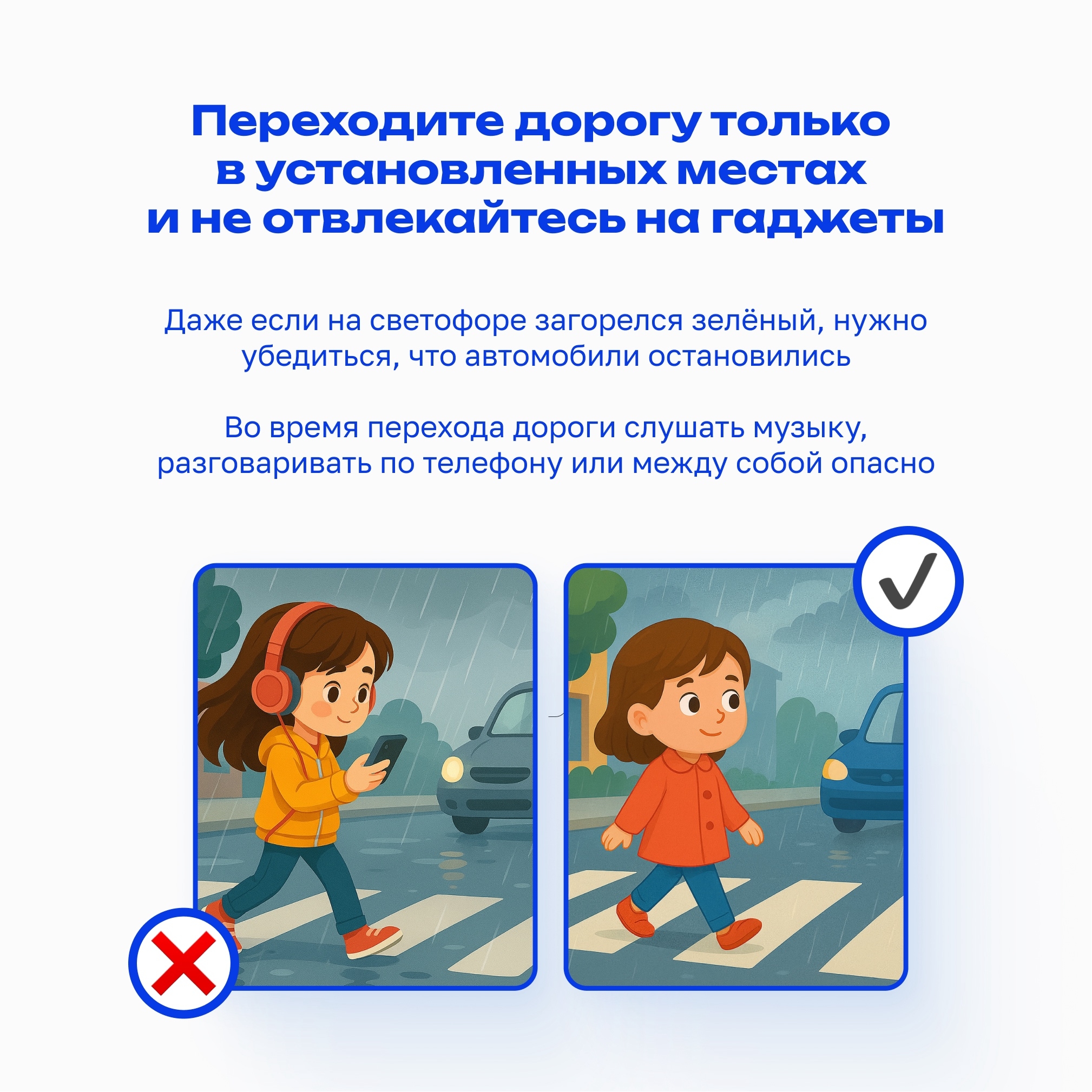 Помним о безопасности на дороге! В осенние дни, когда на улице часто идёт дождь, очень важно быть внимательными к погодным условиям. Лужи могут скрывать неровности и препятствия, а низкая температура привести к образованию гололёда. Всё это создаёт определённые риски как для пешеходов, так и для водителей. Берегите себя и помните важные правила!