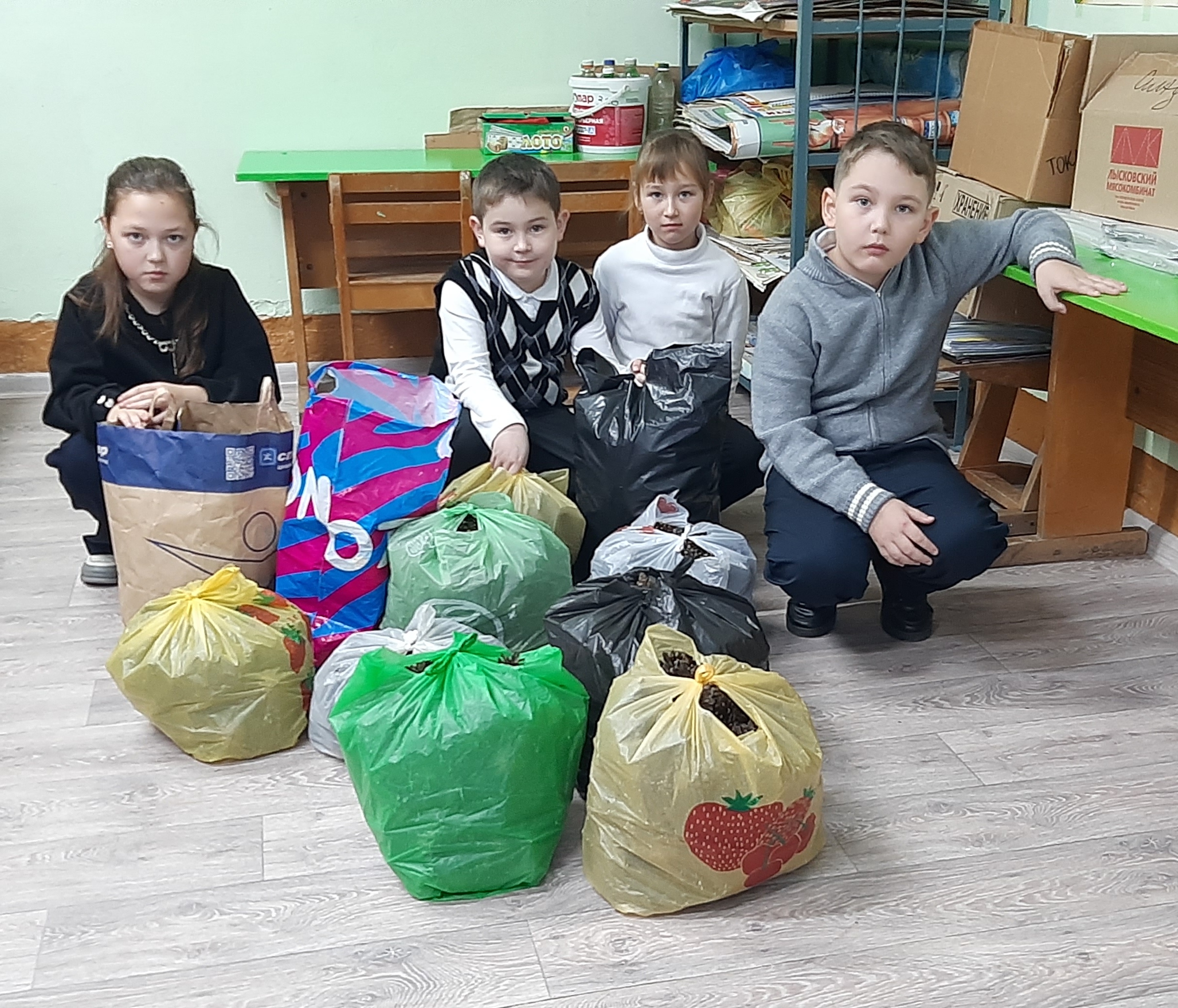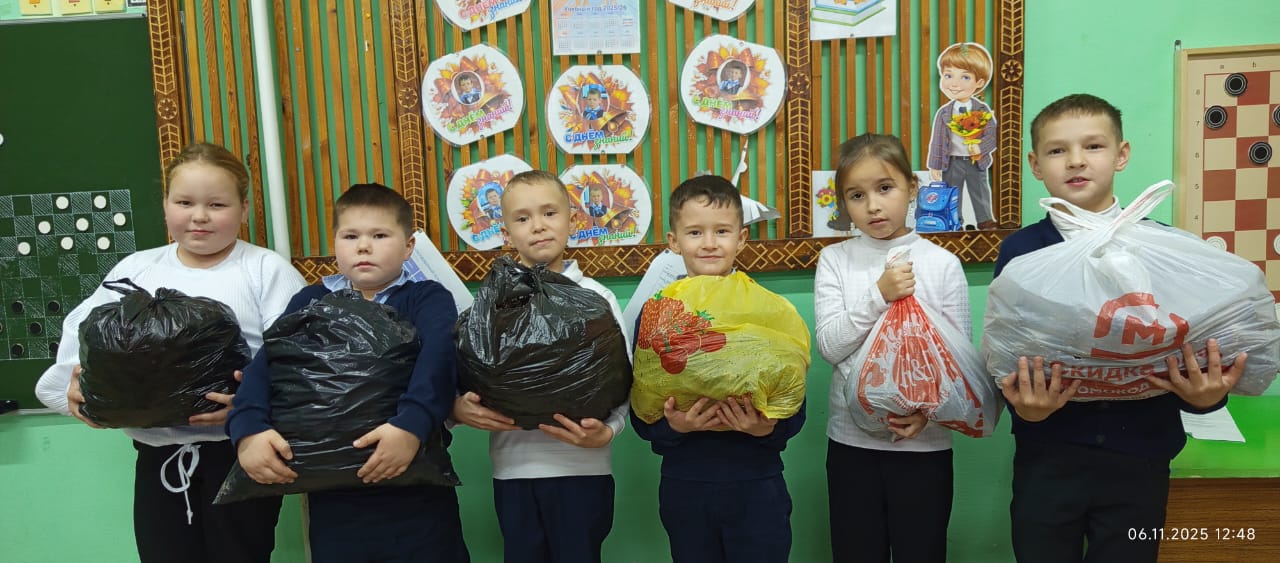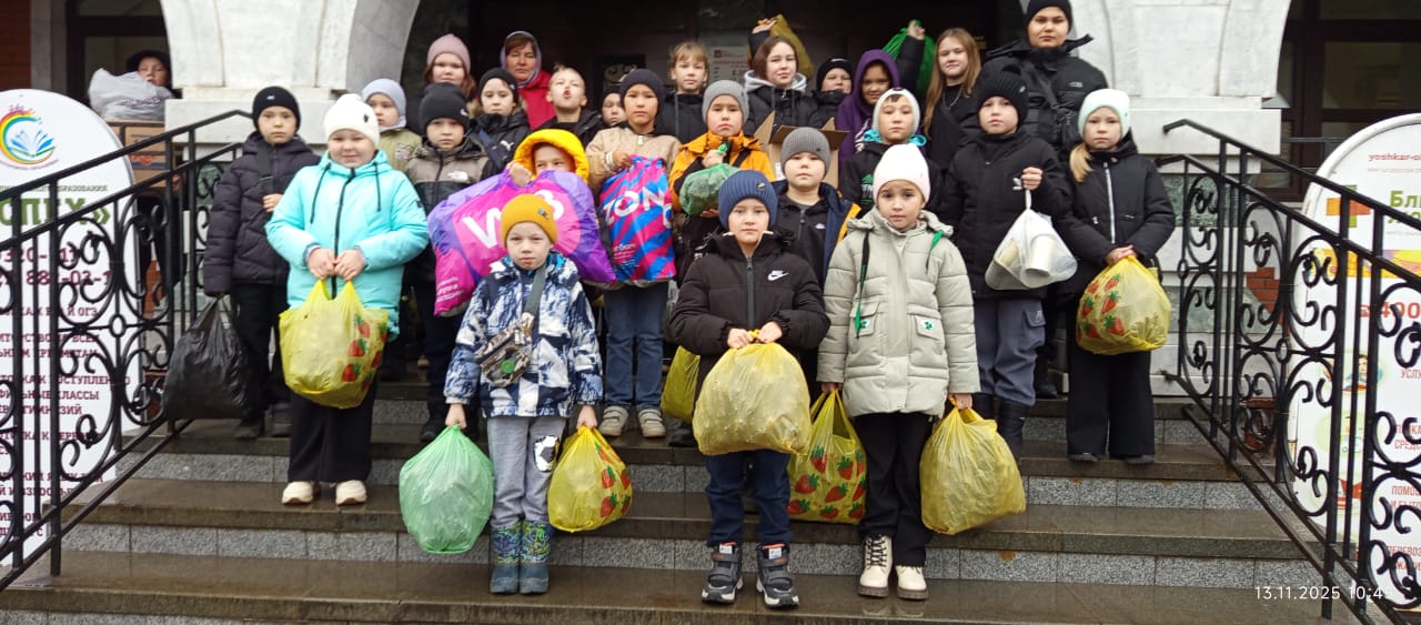 Начиная с осенних каникул, вся школа собирала шишки для окопных свечей. Все собранные шишки и банки увезли в город Йошкар-Ола в пункт «Сердце матери, помощь защитникам Марий Эл», 13.11.2025.