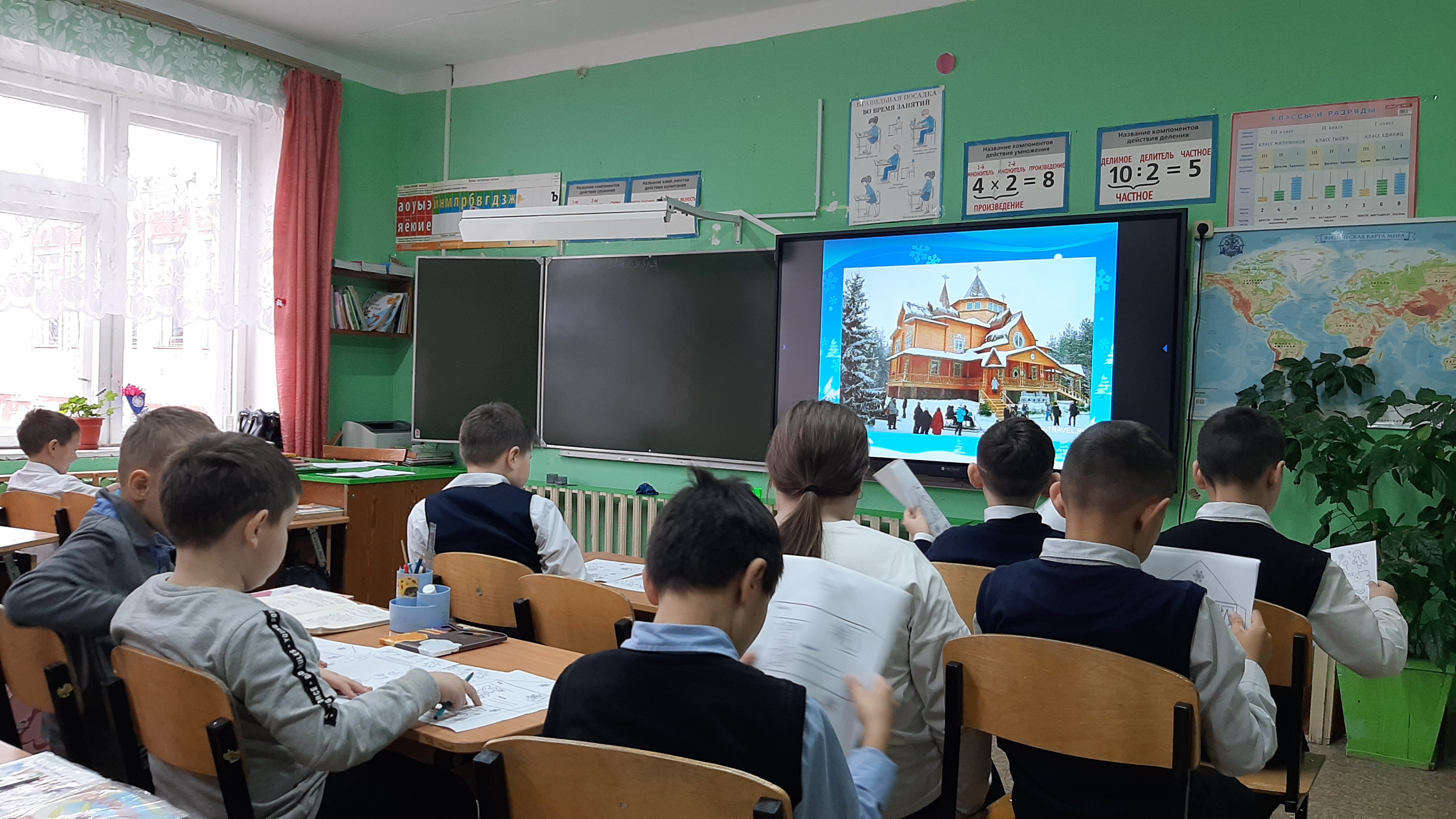 Ученики начальных классов вместе с педагогом-организатором вспомнили загадки о Дедушке, узнали историю возникновения праздника, про его резиденцию, наряды, кто их создает, даже спели новогоднюю песню.