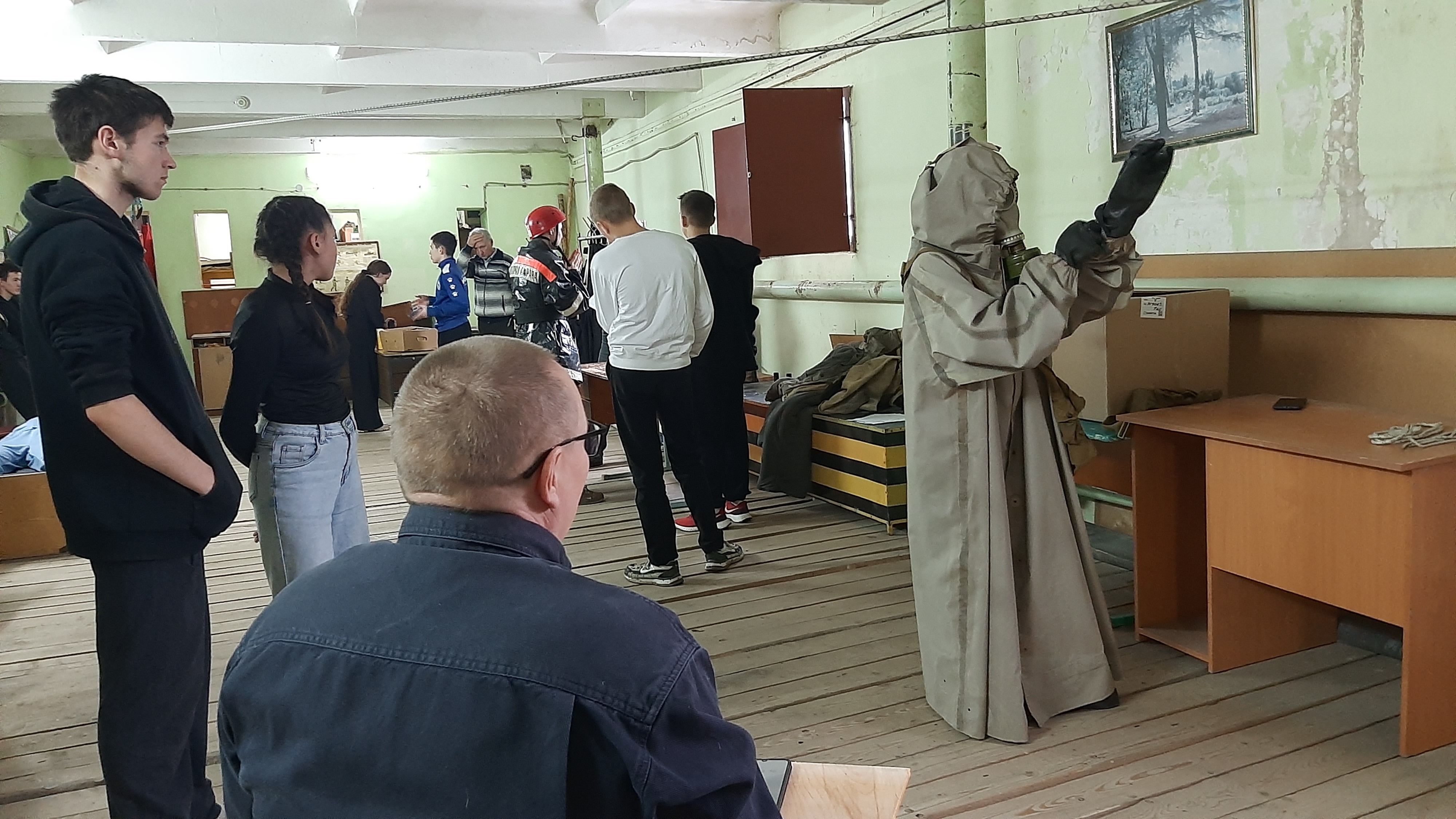 Практическая часть самая зрелищная и сложная. Она состояла из станций: оказание первой помощи (наложение повязки на рану), действия в ЧС (надевание общевойскового защитного комплекта – ОЗК), основы военной подготовки (неполная разборка-сборка автомата Калашникова – АК-74), спасательные работы при пожаре (надевание боевки пожарного – БОП – боевая одежда пожарного).