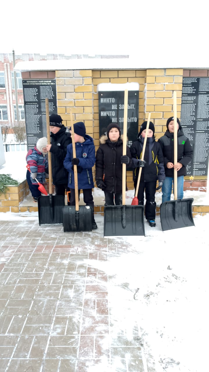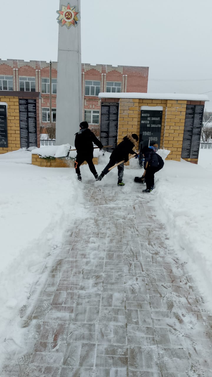 Токтарсолинская ООШ > Новости > Уборка снега у обелиска