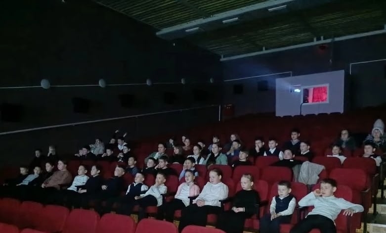 В конце января проходила акция «В кино всем классом». А мы всей школой посетили кинотеатр «Успех» и посмотрели семейный художественный фильм «Простоквашино» (режиссер Сарик Андреасян), 30.01.2026.