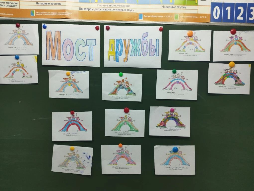 С детьми младшего школьного возраста проведена психологическая игра "Мост дружбы". Совместно с педагогом дети дали определение понятия "Дружба", отметили важность друзей в жизни каждого человека. Сообща детьми создали "Мост дружбы", отметив, что он прочен только в единстве.  Далее дети нарисовали собственные "мосты дружбы", вложив в общее дело свой кусочек теплоты и радости.
