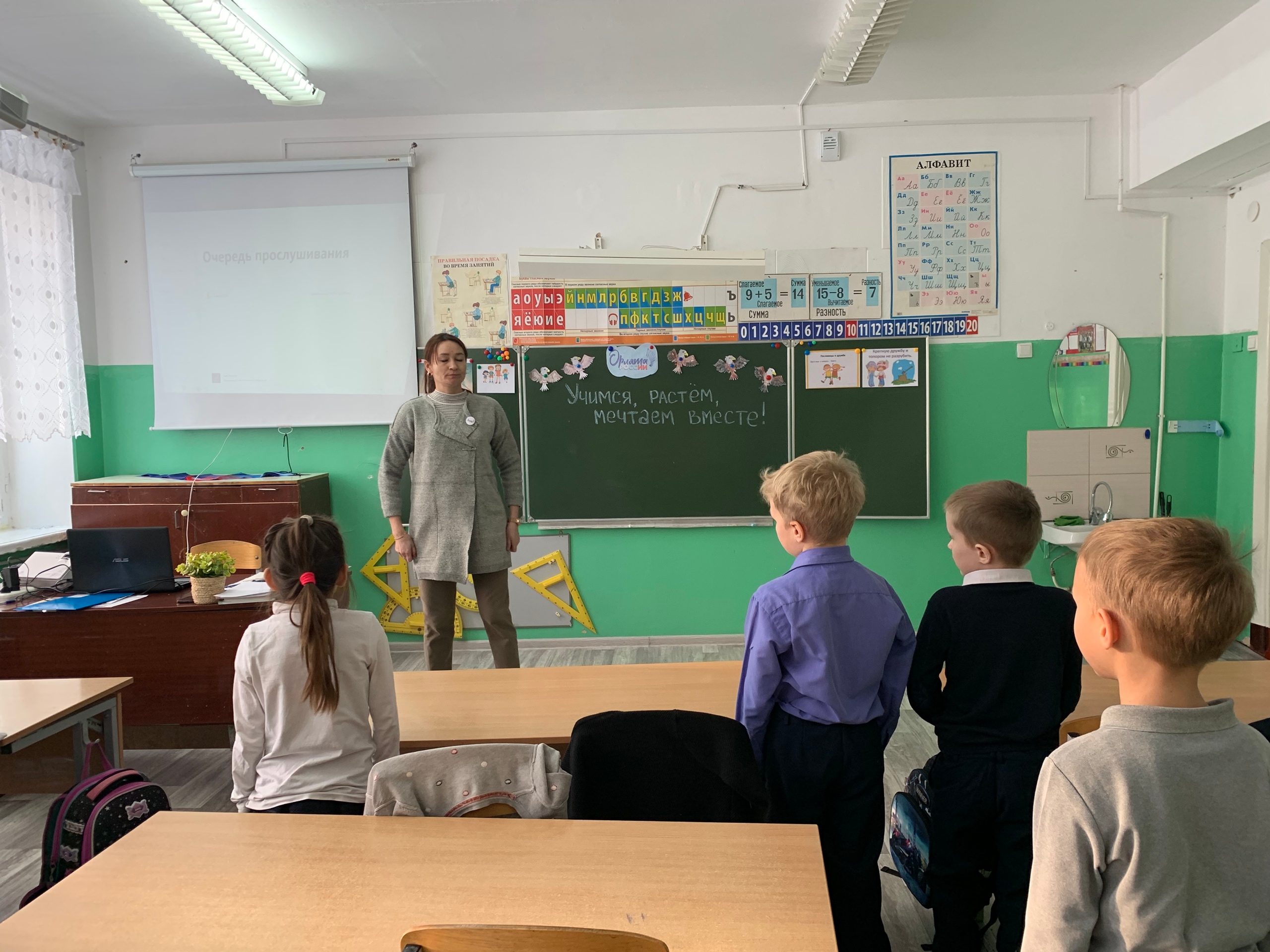 Классный руководитель 1 класса Алина Иванова и советник директор по воспитанию Татьяна Бовырина провели торжественную церемонию посвящения учащихся 1 класса в «Орлята России»