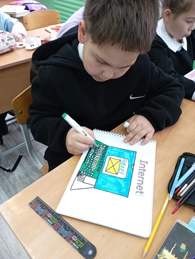 В рамках Декады безопасного интернета в 3 классе совместно с учителем рисования Никитиной Л.В. прошёл классный час "Всемогущий Интернет и его опасность". Дети посмотрели небольшое видео "Безопасный интернет". Затем обсудили вопрос о пользе и вреде интернета. В конце занятия ребята нарисовали рисунки об опасности интернета.