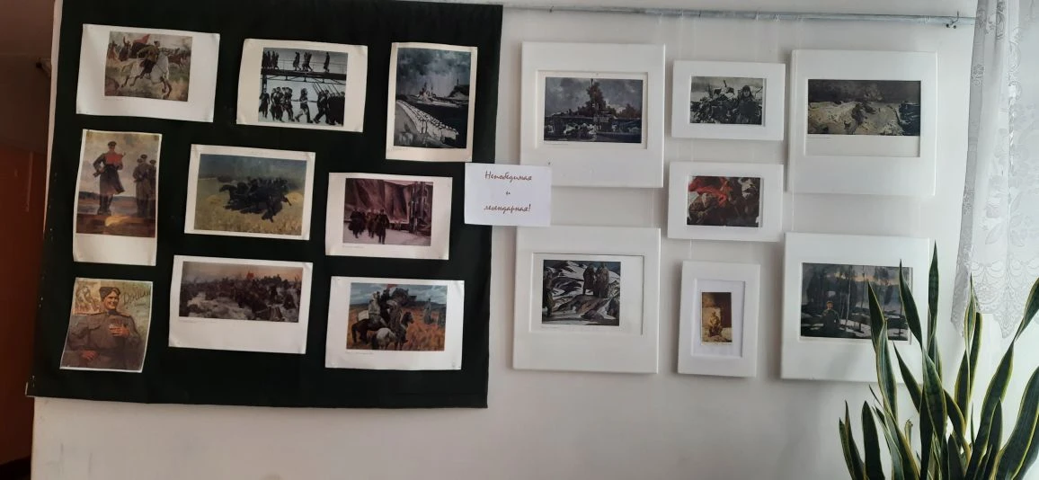 В школе работает выставка репродукций картин на тему «Непобедимая и легендарная», посвященная Дню защитника Отечества.
