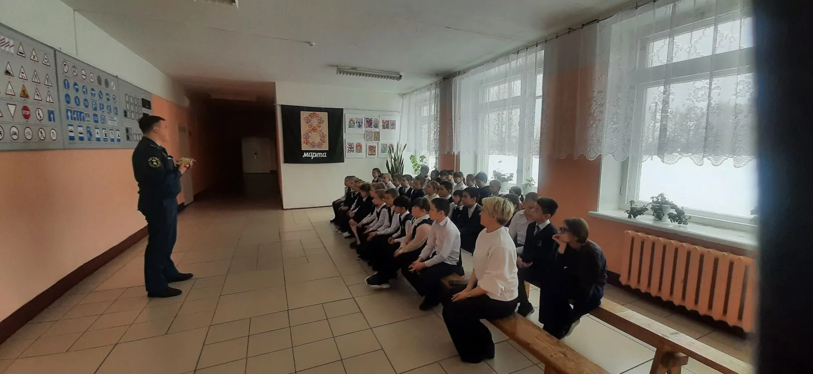 Школьники не только повторили теорию, но и активно участвовали в диалоге. Вместе с гостем они разобрали алгоритм действий на случай экстренной ситуации: как правильно вызвать пожарную службу (по номерам 101 или 112), что делать, если путь к выходу отрезан дымом; изучили памятку «В случае возникновения пожара».