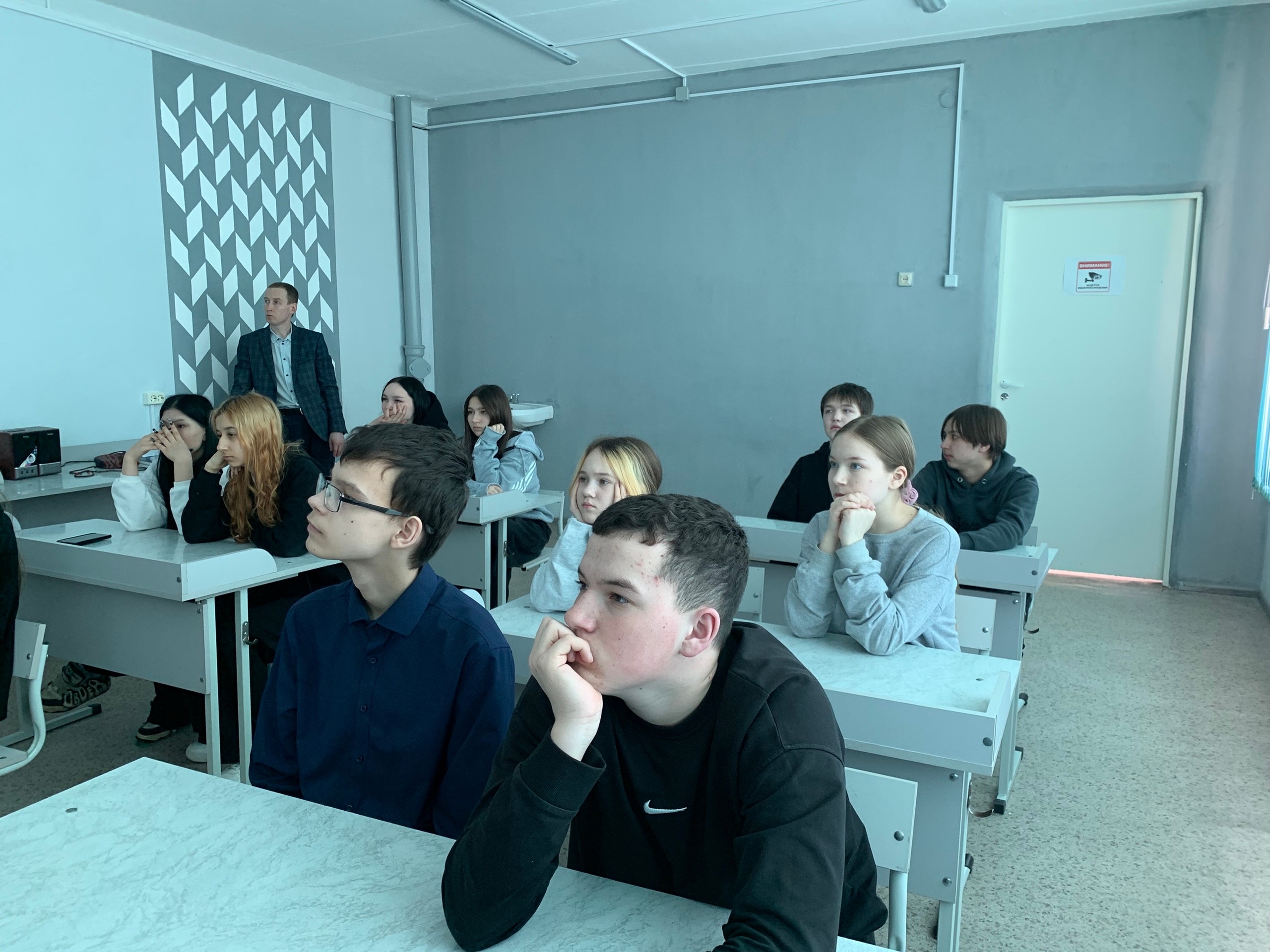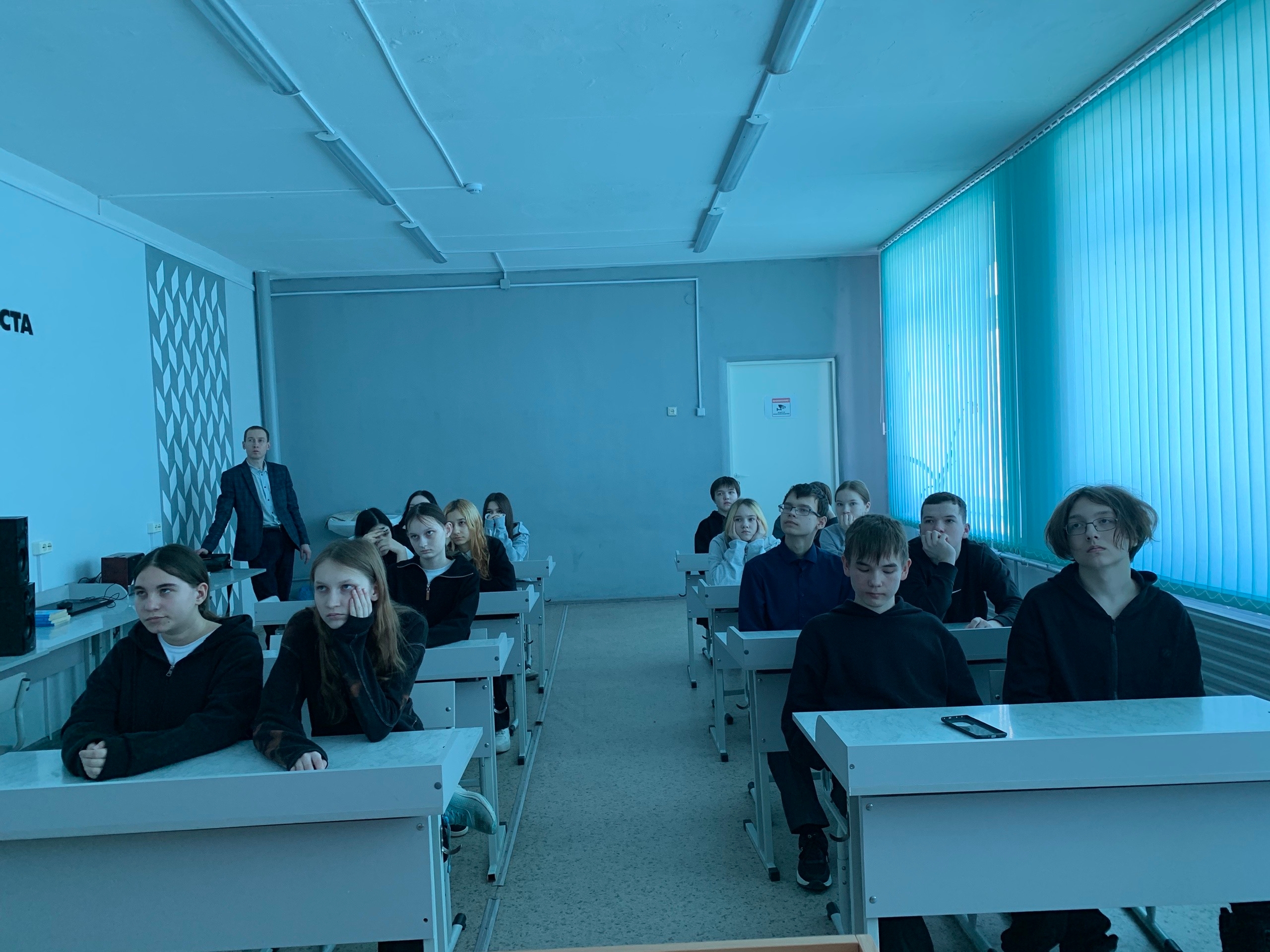 Накануне Дня воссоединения Крыма и Севастополя с Россией советник директора по воспитанию и взаимодействию с детскими общественными объединениями Татьяна Бовырина совместно с учителем истории Вячеславом Светловским организовали с обучающимися 8-9 классов, активистами Движения Первых, просмотр фильма «Русский Крым и Севастополь».