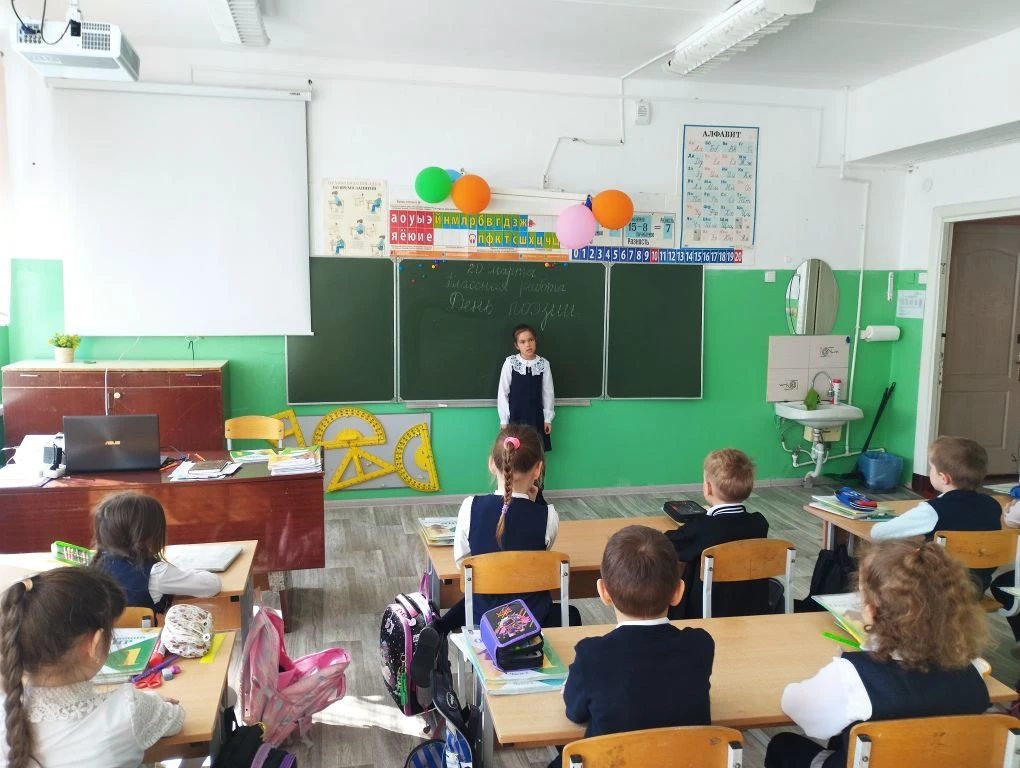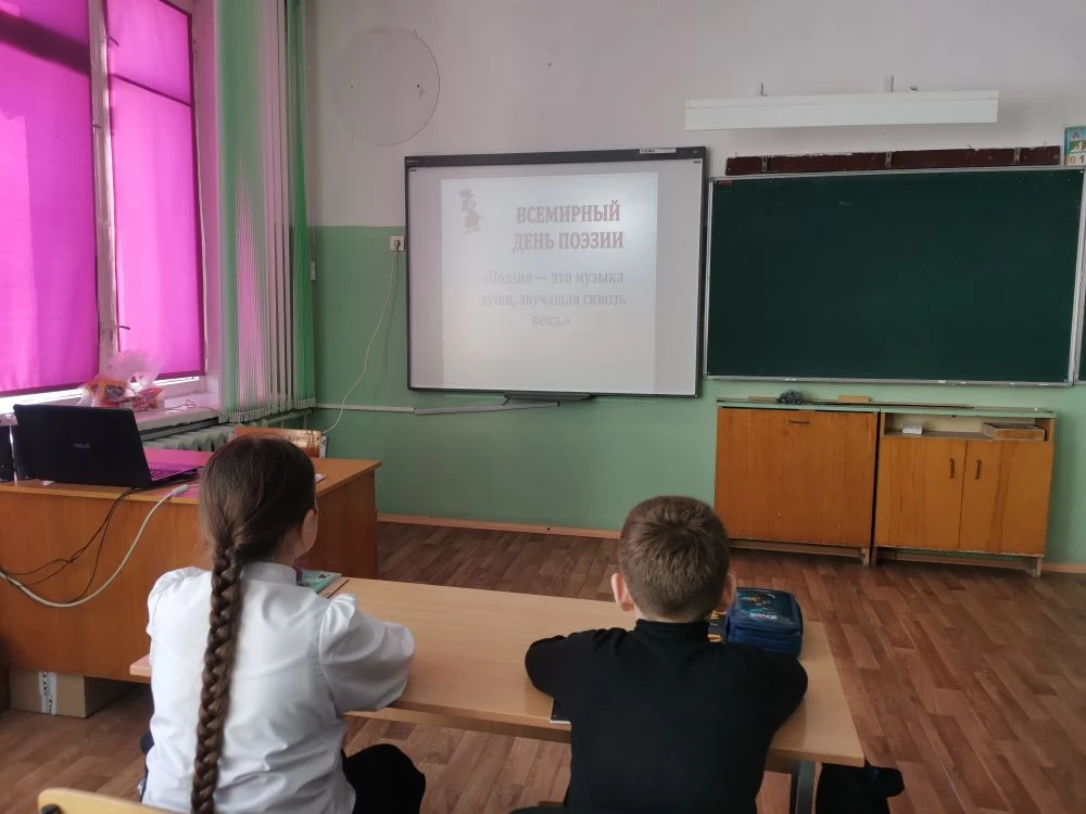 В рамках празднования Всемирного дня поэзии в первом классе состоялся тематический классный час. Мероприятие началось с беседы «Поэты нашей Родины», в ходе которой ребята познакомились с жизнью и творчеством известных русских поэтов, узнали о значении поэзии в культуре и истории страны.