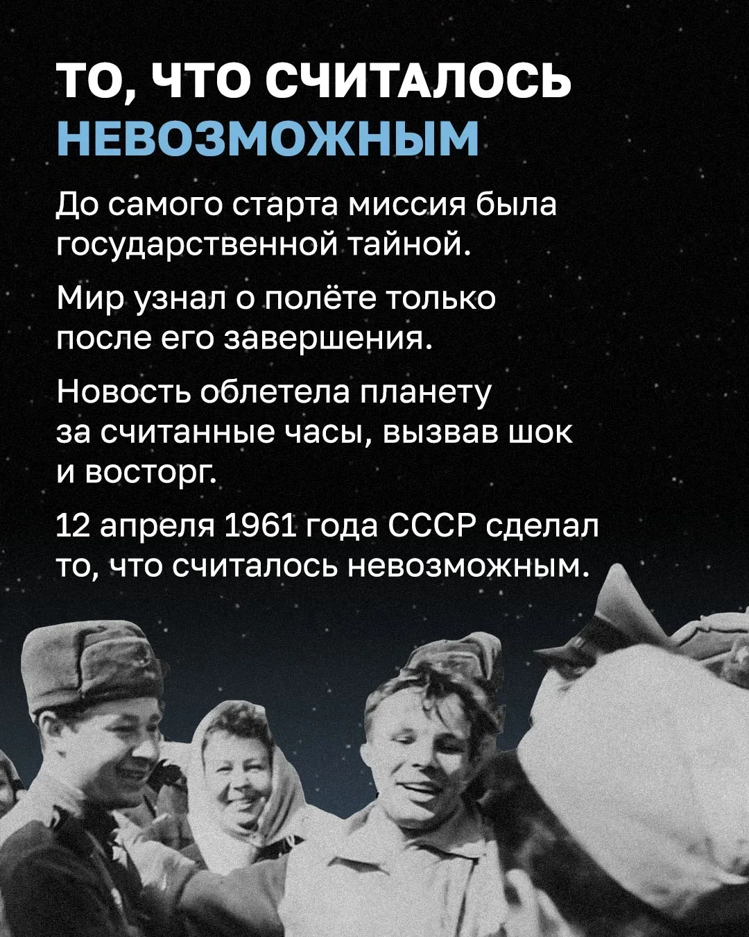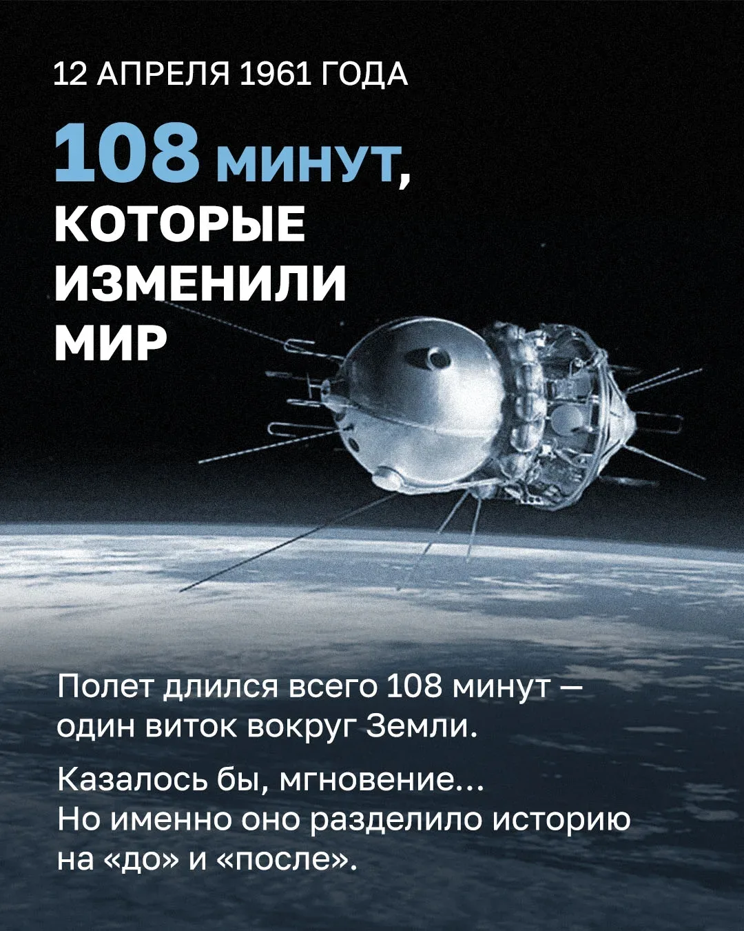🚀 12 апреля 1961 года Юрий Гагарин стал первым человеком в мире, совершившим полёт в космос. 108 минут, которые изменили всё. В 2026 году мы отмечаем 65 лет этого исторического события.
