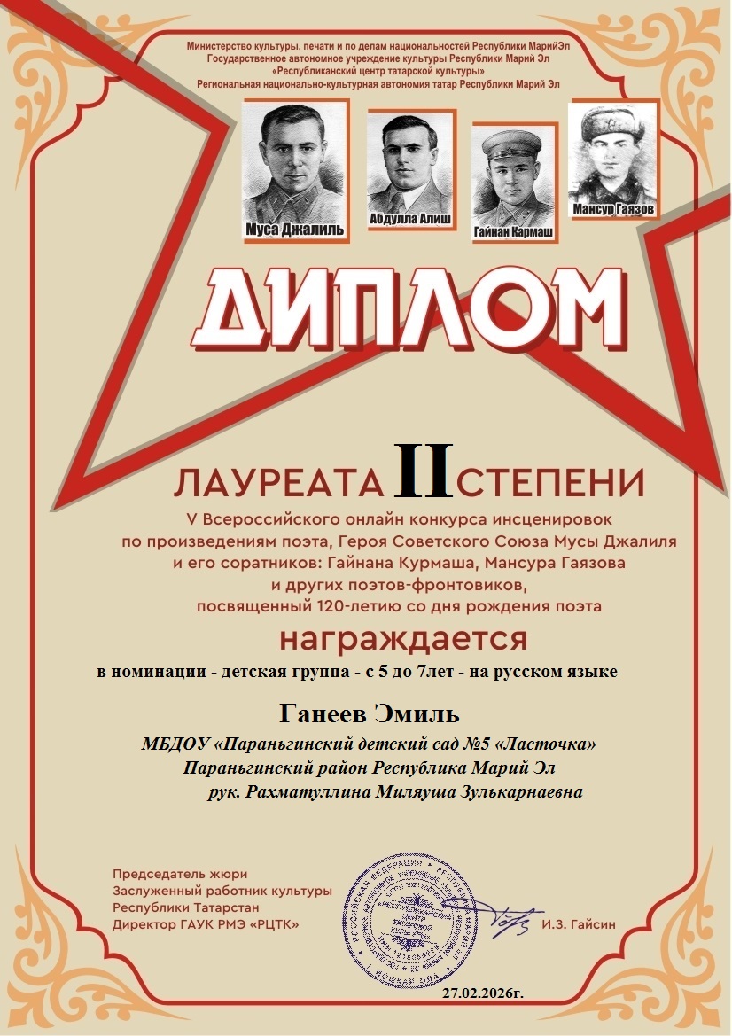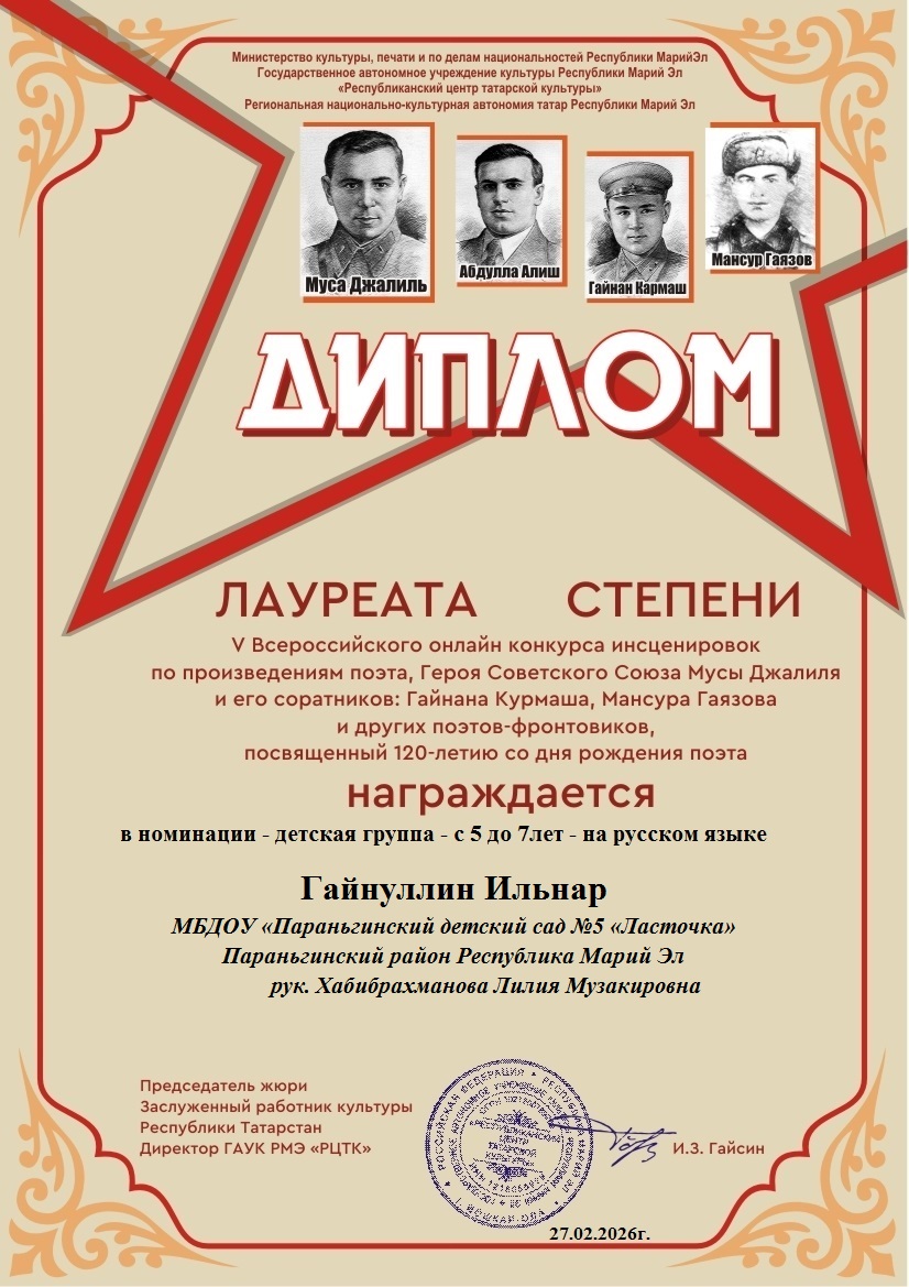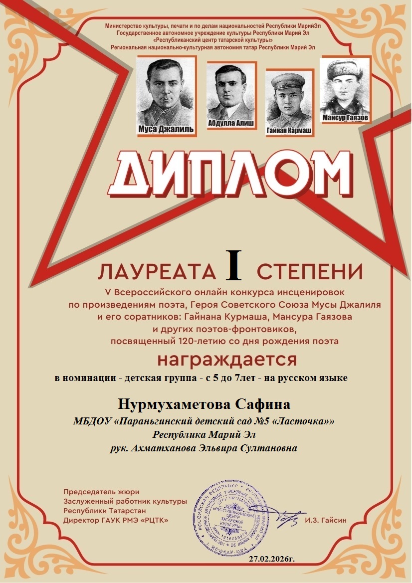 Диплом Жар-птица 2025 рук. Гизатуллина З.НДля открытия меню воспользуйтесь сочетанием клавиш SHIFT+ВВОД (в новом окне).Создать