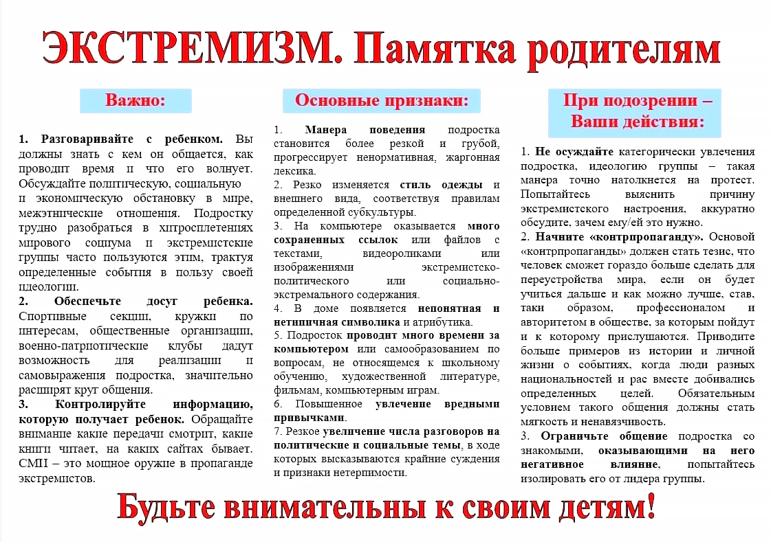 памятка родителям по экстремизмуДля открытия меню воспользуйтесь сочетанием клавиш SHIFT+ВВОД (в новом окне).