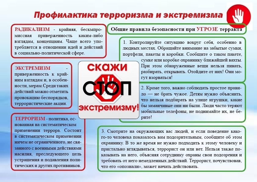 профилактика терроризма и экстремизмаДля открытия меню воспользуйтесь сочетанием клавиш SHIFT+ВВОД (в новом окне).
