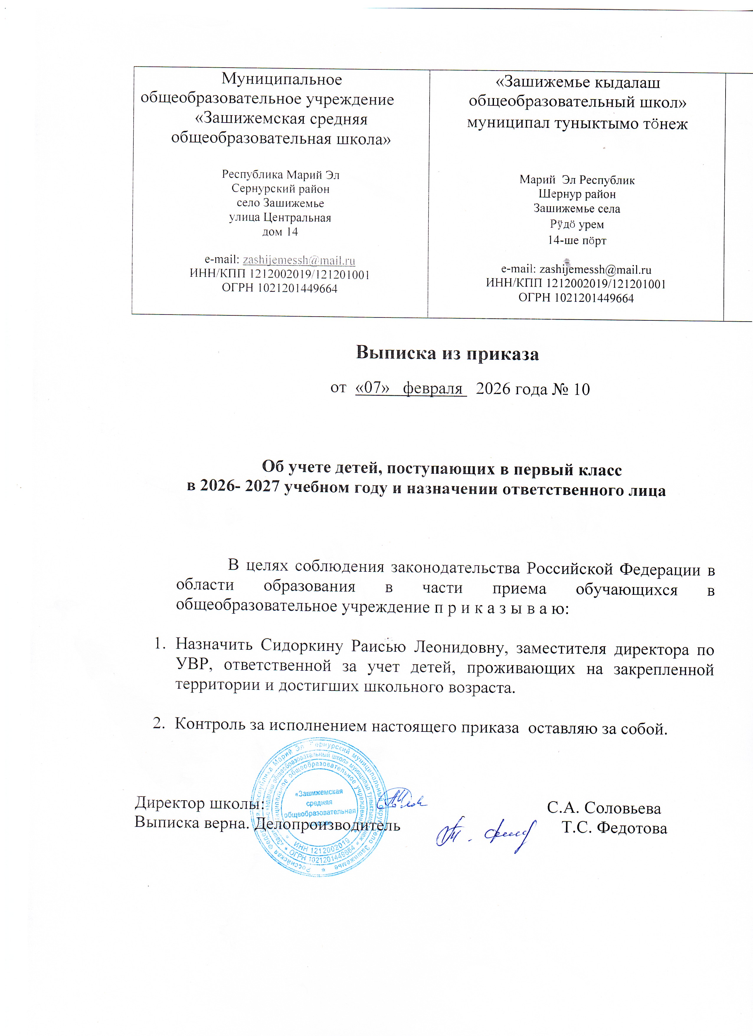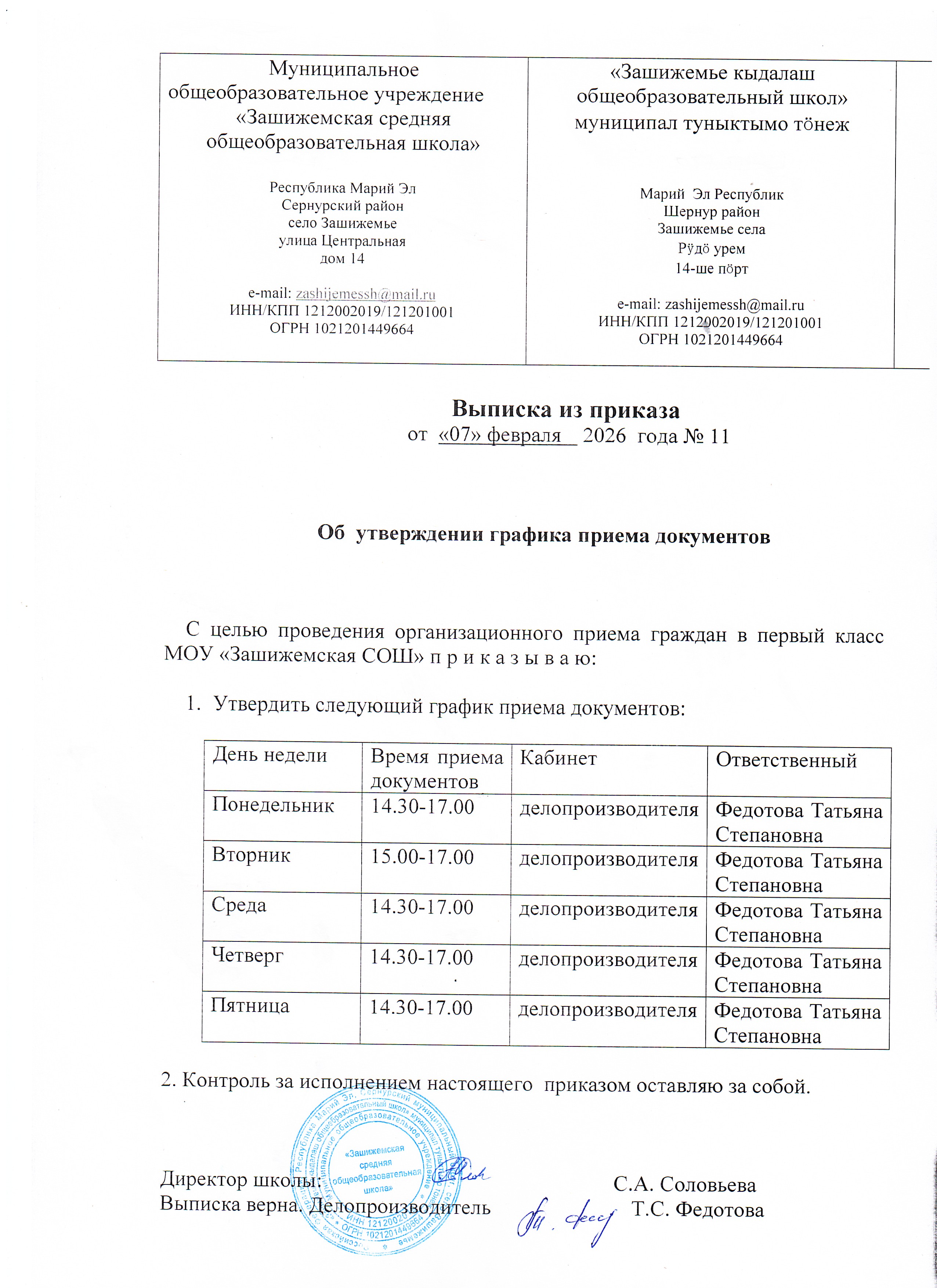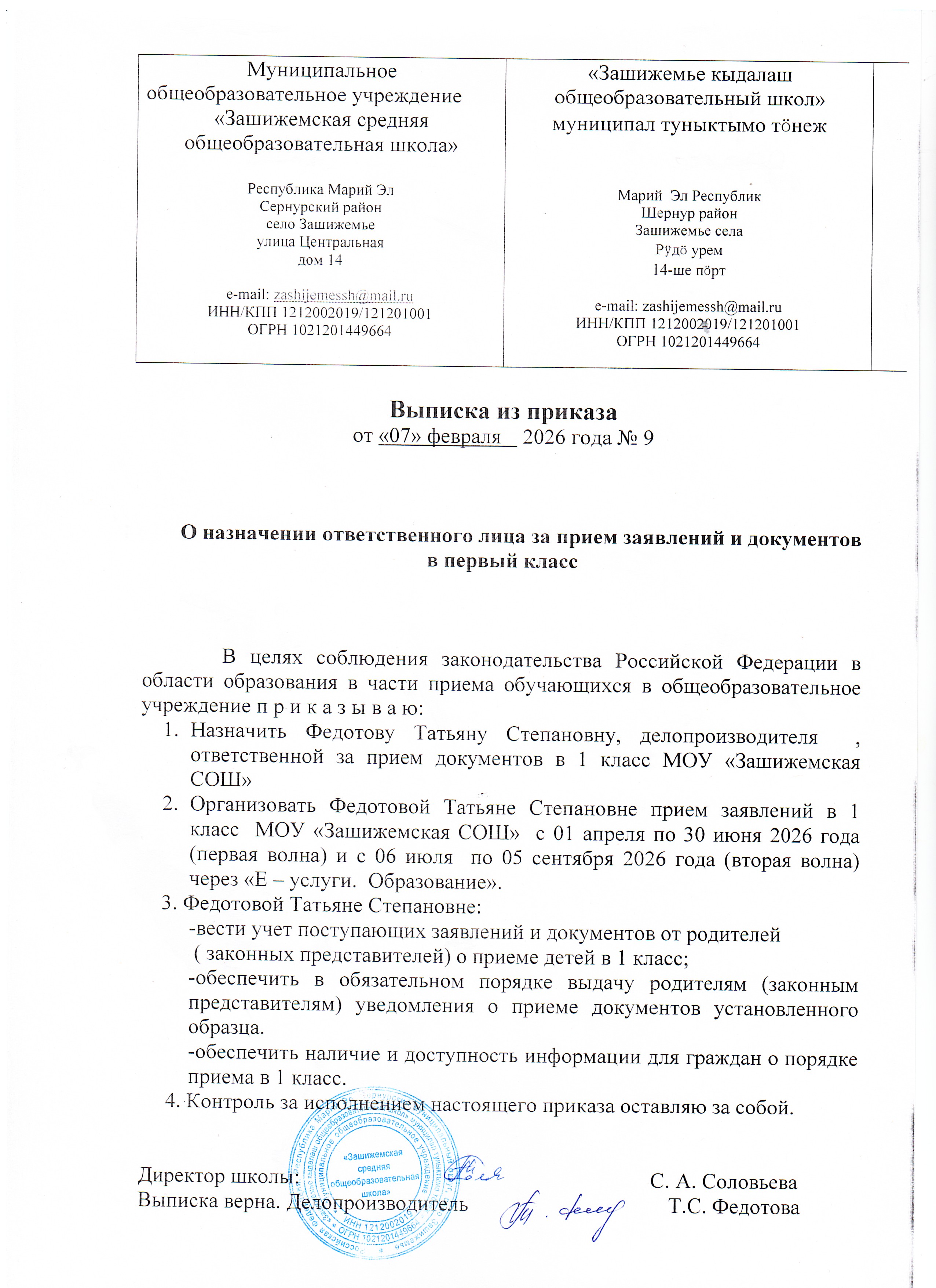 МОУ «Зашижемская СОШ» > Прием в 1 класс