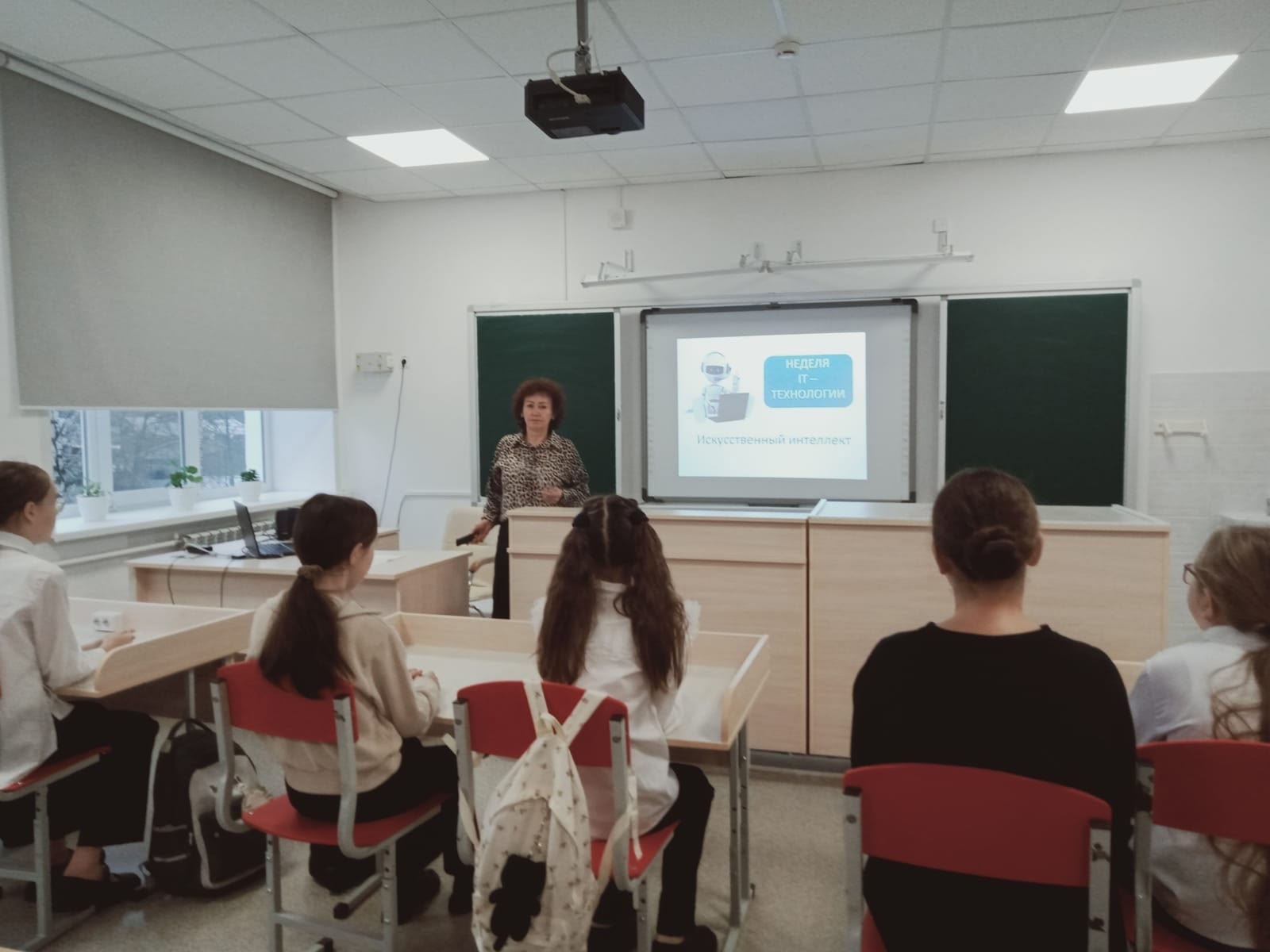 В рамках недели IT проводился классный час на тему «Что такое искусственный интеллект и его возможности». Кроме этого рассказывали про новое приложение MAX.