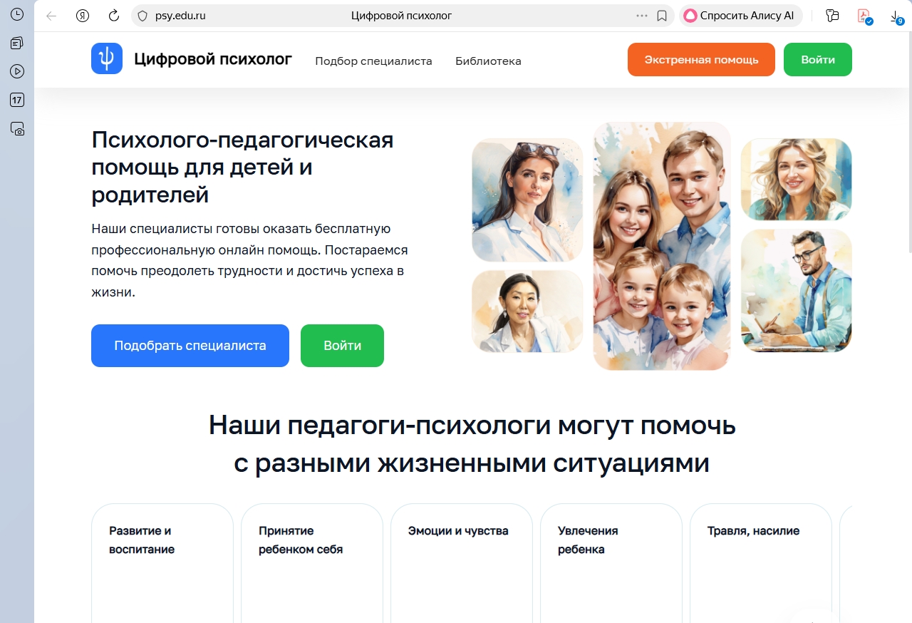 Этот сервис станет важным инструментом поддержки эмоционального благополучия Вас и ваших детей. Проходите по ссылке для входа https://psy.edu.ru/client  и записи к выбранному вами психологу.