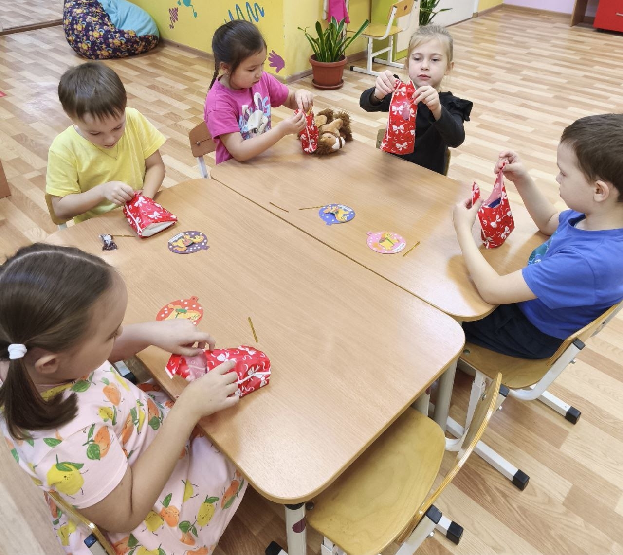 наши воспитанники с большим теплом и старанием создали своими руками новогодние открытки со сладким подарком внутри, чтобы подарить праздничное настроение.
