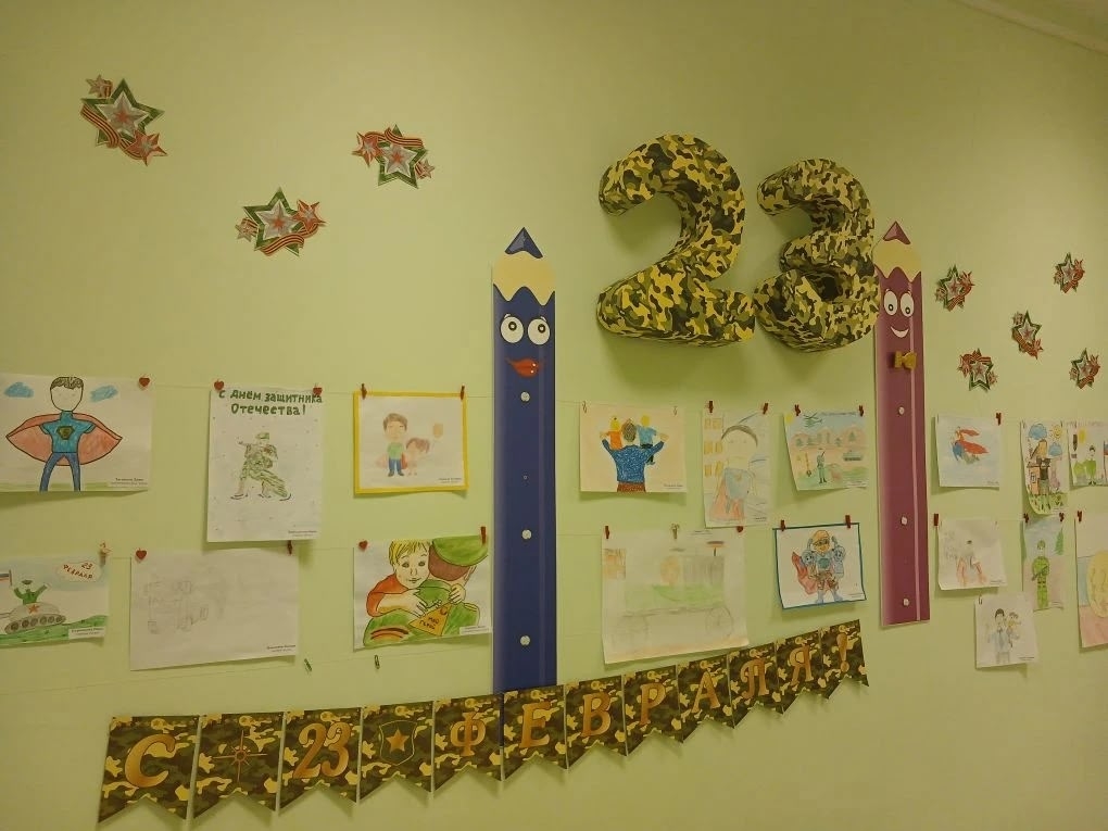 Празднование 23 февраля в нашем детском саду проходит в формате тематических недель, направленных на патриотическое воспитание. В эти дни оформлена творческая выставка рисунков «Мой папа – супергерой!»,