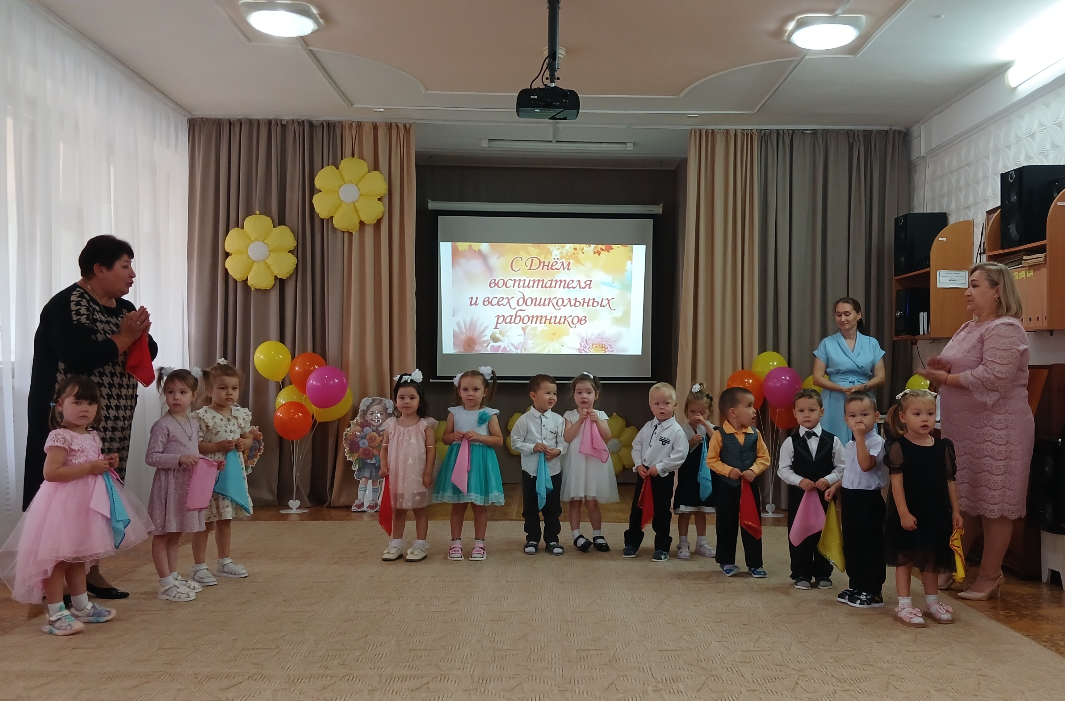 26 сентября в нашем детском саду прошёл замечательный праздник – «День дошкольного работника». Этот особенный день посвящён всем взрослым, которые заботятся о детях каждый день: воспитателям, няням, поварам и всем остальным сотрудникам детского сада. На праздник также были приглашены и ветераны дошкольного образования. Все дети вместе с педагогами подготовили поздравления и сюрпризы. Дошколята танцевали, пели песенки, рассказывали стихотворения и даже сыграли замечательную сценку «Как принцесса профессию выбирала», чтобы выразить свою благодарность и любовь. Каждый хотел показать, как важно для него внимание и забота воспитателей и других сотрудников. День дошкольного работника – это праздник не только для взрослых, но и для детей. Он учит уважать труд и внимание тех, кто делает наше детство радостным и ярким. Праздник получился тёплым и радостным, а все сотрудники детского сада почувствовали, как нужны и важны для каждого ребёнка!