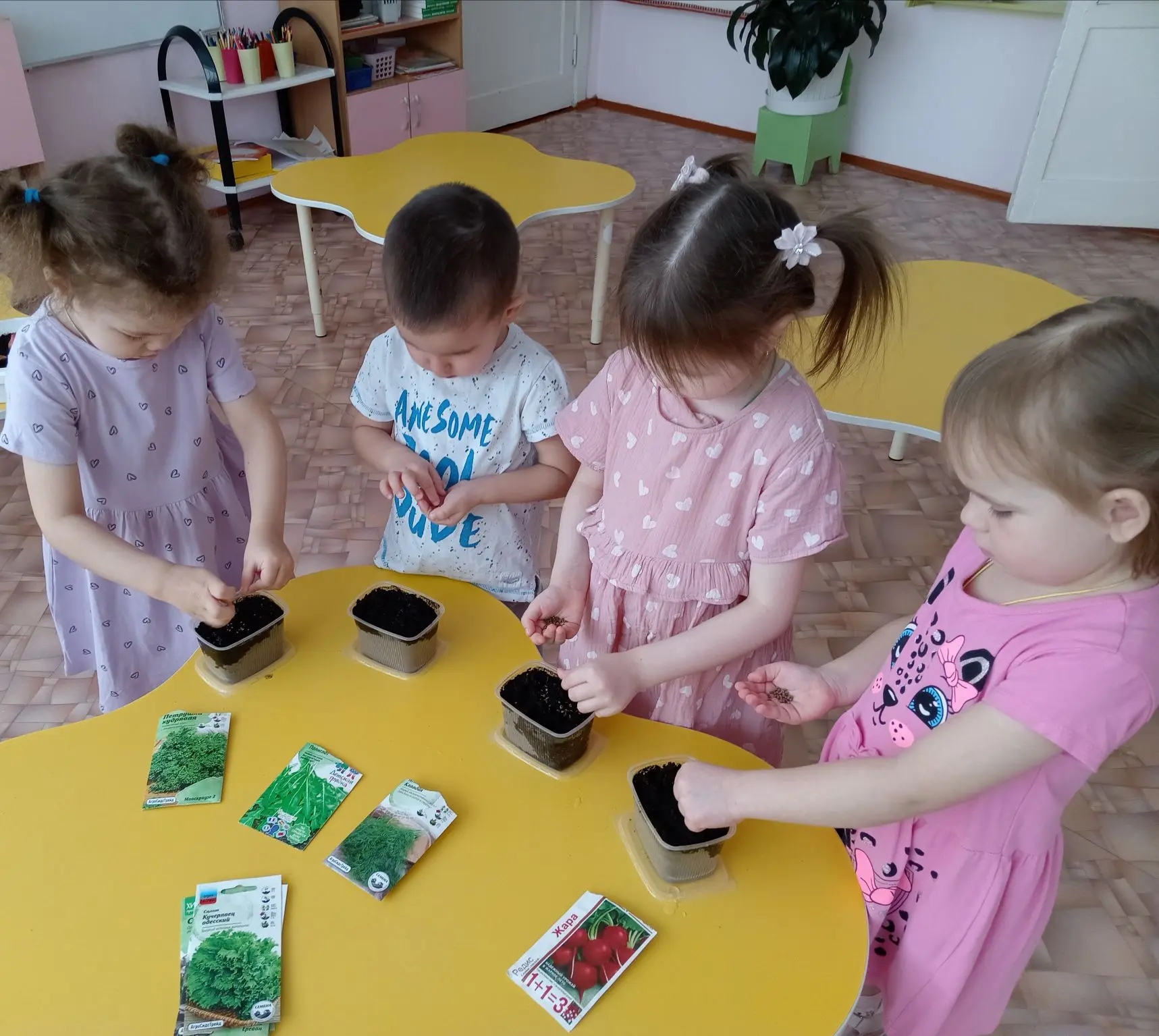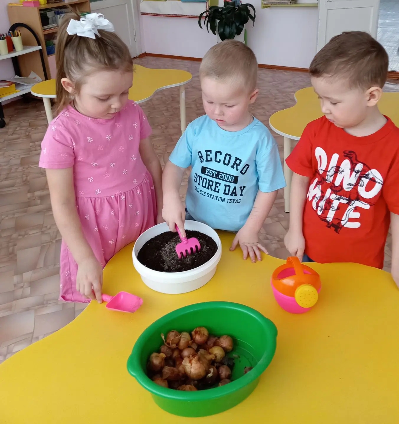 И мы с детьми во второй младшей группе ухаживаем за растениями. Учимся сажать лук, сеять петрушку, салат, редиску, укроп. Вместе с ребятами мы будем наблюдать и ухаживать за растениями. Уголок природы - это не только декорации, а важный инструмент в развитие вашего ребёнка. (Грибошникова Н.Г.)