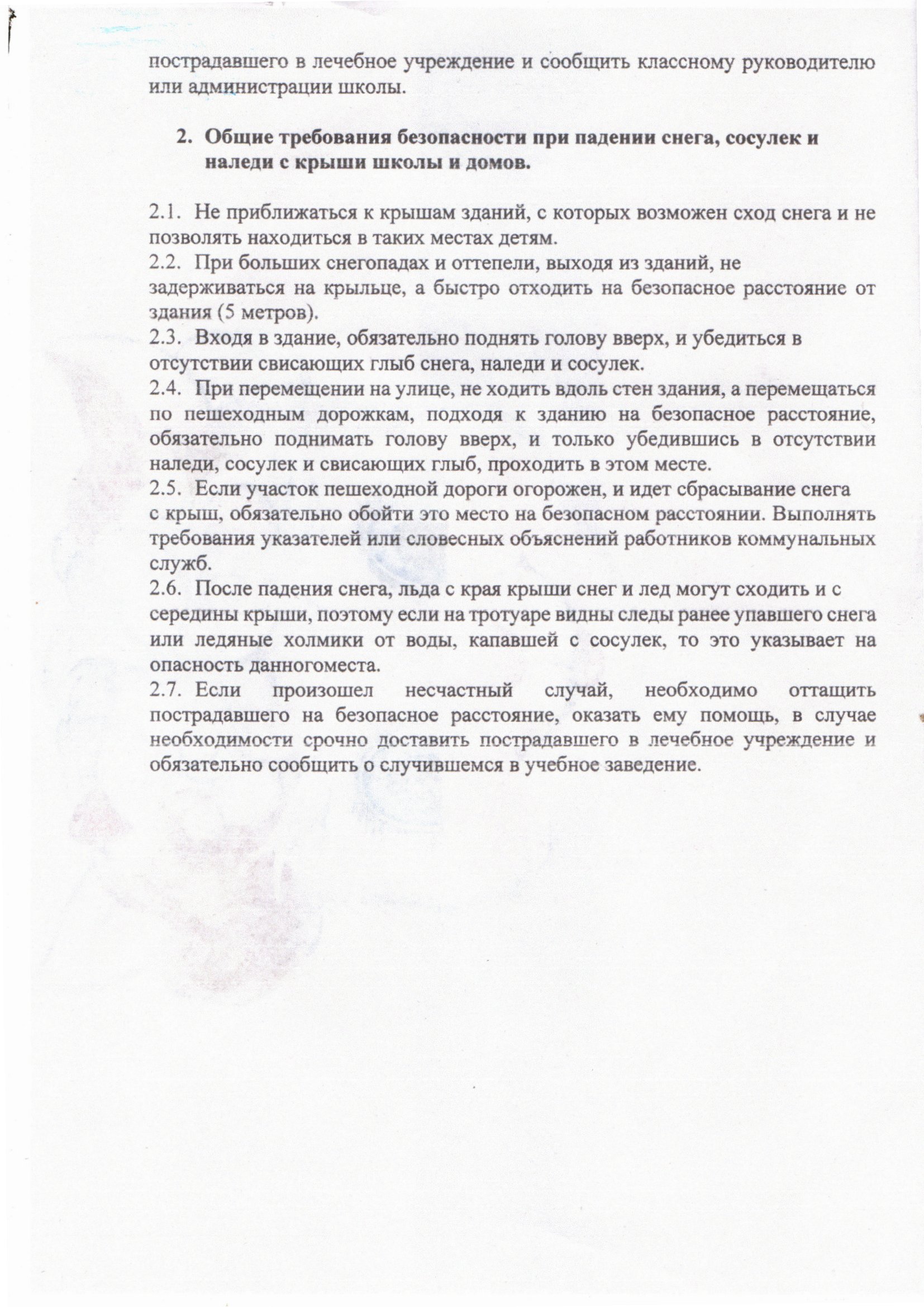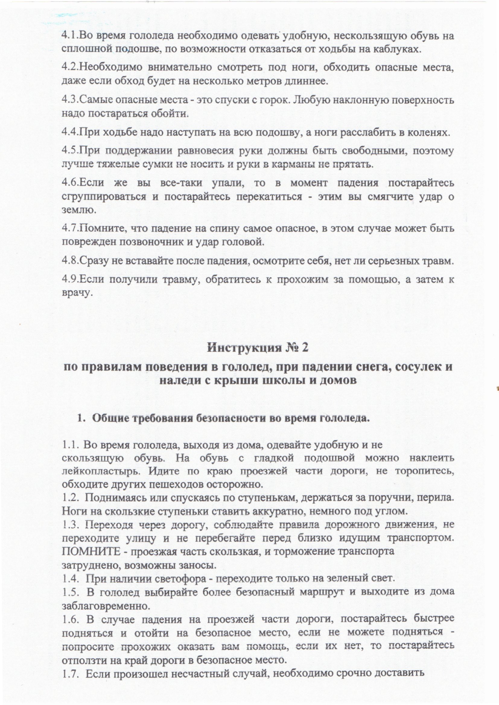 Инструкция 2 По правилам поведения в гололед, при падении снега, сосулек и наледи с крыши школы и домов