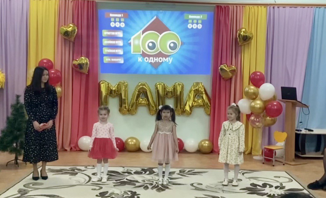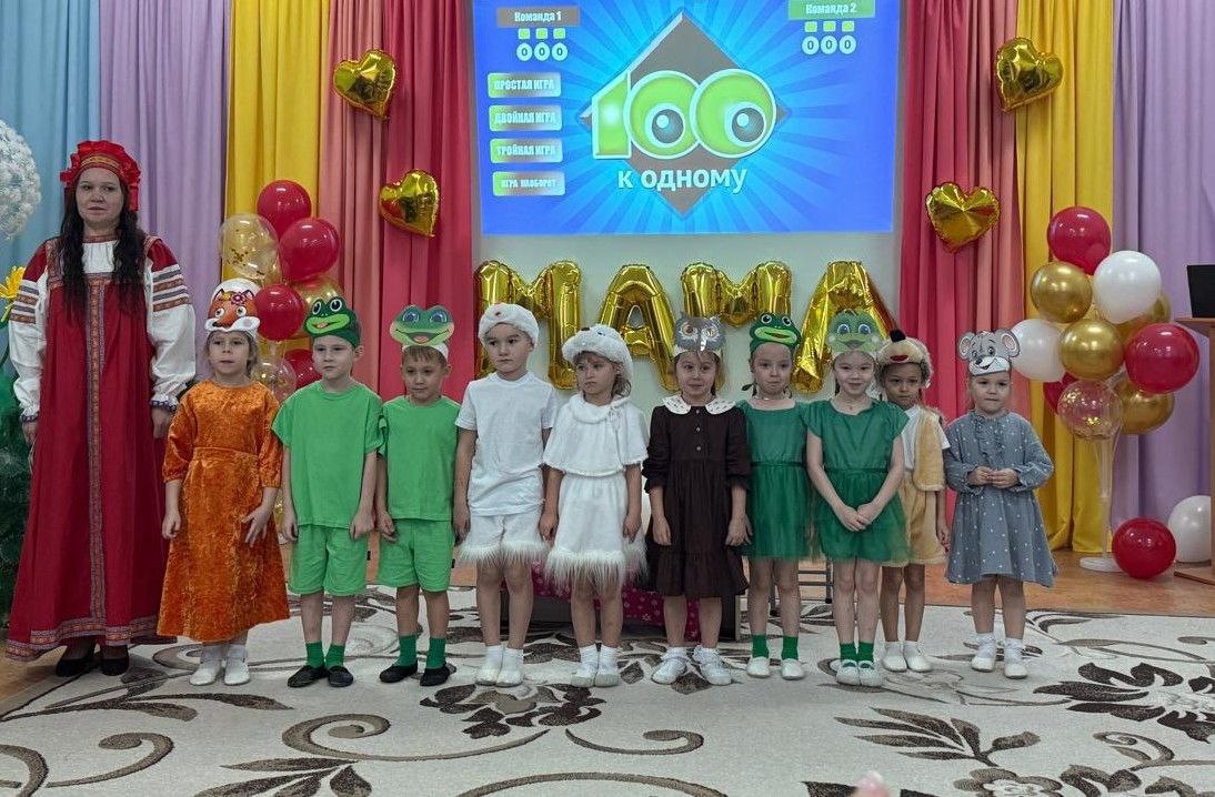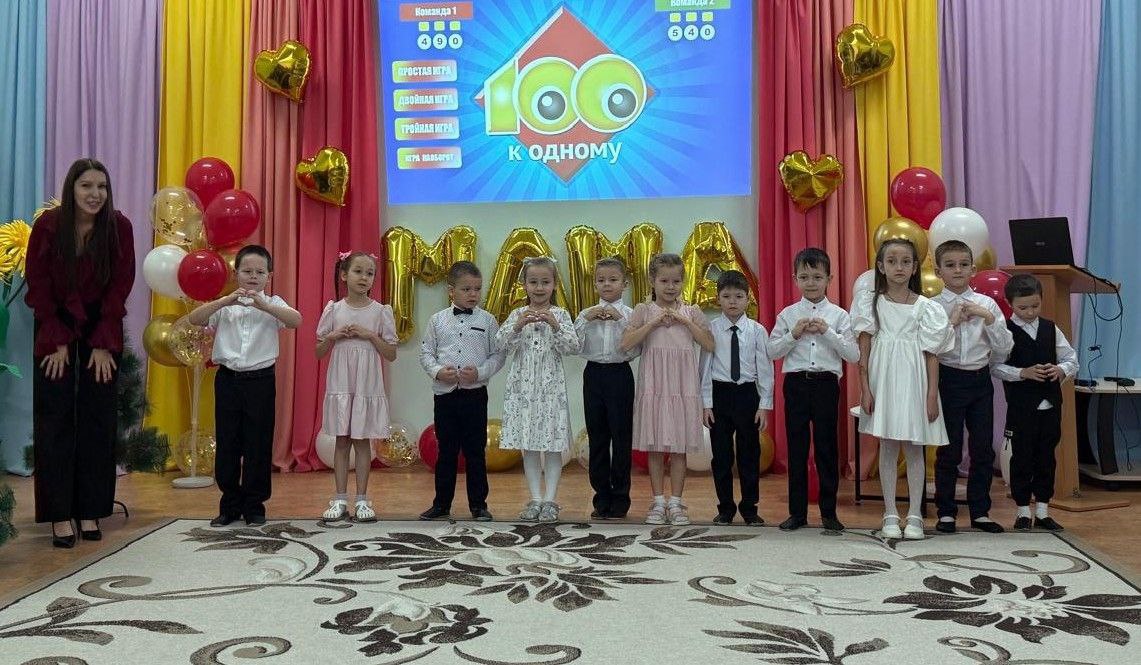 Сегодня, 28 ноября 2025 года, в нашем детском саду состоялось праздничное мероприятие, посвящённое Дню Матери. Мы организовали весёлую интеллектуальную игру "100 к 1", в которой активно участвовали мамы наших воспитанников. Во время перерывов между турами дети представили красочные номера: спели песни, прочли выразительные стихи и исполнили танец. Мероприятие завершилось награждением участников дипломами, вызвав искреннюю радость и благодарность среди родителей.