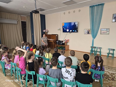 Сегодня, накануне Дня космонавтики, в нашем детском саду прошло тематическое развлечение «Космическое путешествие».