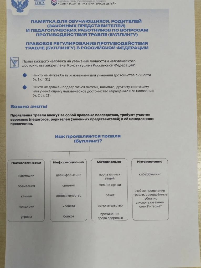 : Памятка по вопросам противодействия травле (буллингу)