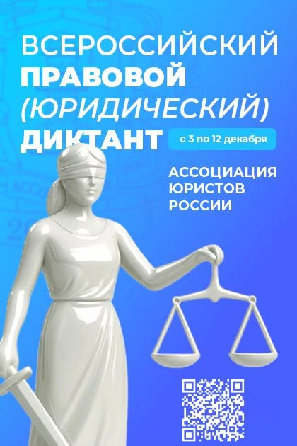 С 3 по 12 декабря 2025 года Ассоциация юристов России как одно из крупнейших экспертных сообществ страны проведет ежегодный Всероссийский правовой (юридический) диктант на официальном портале юрдиктант.рф.