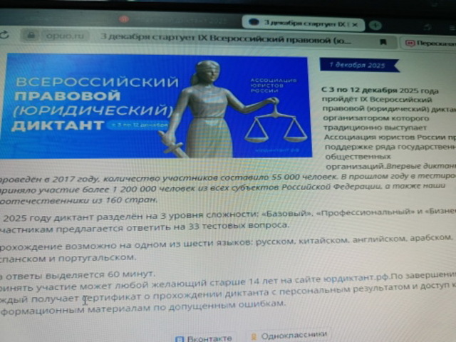 Новости: IX Всероссийский правовой (юридический) диктант