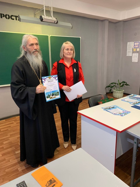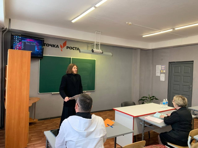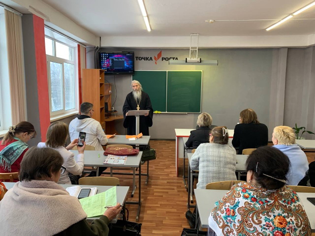 Далее состоялся диалог-клуб для педагогов. Арбузов А.Л., помощник настоятеля храма Дм.Солунского, остановился на вопросах духовно-нравственного воспитания молодежи в Большепаратском приходе. Он отметил, что гражданско-патриотическое и духовно-нравственное воспитание обучающихся и молодежи является важнейшим направлением совместной деятельности прихода и Большепаратской школы.