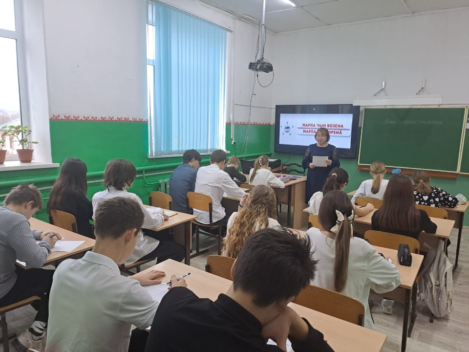 5 декабря прошла Международная акция «XIII всеобщий диктант «Марла чын возена». Обучающиеся нашей школы приняли активное  участие в этом важном мероприятии,  направленном на содействие сохранению и развитию языка как культурного наследия марийского народа.    Данная акция приурочена ко Дню марийской письменности, который ежегодно отмечается 10 декабря. Марийский язык со своей богатой культурой и традициями является неотъемлемой частью национального и культурного наследия России.