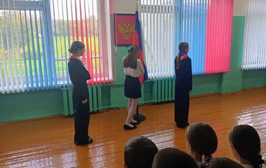 Новая учебная неделя в нашей школе традиционно началась с торжественного вноса флага и исполнения гимна Российской Федерации.
