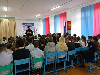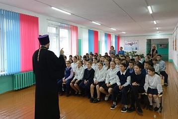 В МОУ "Обшиярская ООШ" настоятель Храма Пресвятой Богородицы иконы«Умягчение злых сердец» священник Виталий Ульянов, провёл беседу с обучающимися 5-8 классов о духовно-нравственном просвещении молодежи и смысл жизни человека на Земле.Урок был посвящён поиску смысла жизни и значению каждого совершаемого нами поступка. Отец Виталий отметил важность подобных встреч с ребятами, именно в тот момент, когда у детей возникает много вопросов.Поначалу ребята чувствовали себя немного скованно, но отец Виталий начал разговор о глубоких важных вопросах веры в такой доступной и интересной форме, что обучающиеся быстро включились в разговор и начали задавать волнующие их вопросы.На простых и ярких примерах батюшка объяснил детям православное понимание извечных вопросов человеческого бытия: что есть добро и зло, что такое совесть, какую роль она играет в жизни каждого человека. Рассказал ребятам о взаимоотношениях в семье, о том, что любовь к своим ближним нужно воспитывать, прежде всего, в семье. Сделал акцент на том, что в первую очередь нужно любить и уважать своих родителей и своих наставников, то есть учителей.И, конечно, хочется надеяться, что беседа принесет свои добрые плоды в жизнь ребят. Батюшку выслушали с неподдельным интересом не только обучающиеся, но и педагоги школы. В итоге беседа прошла живо и интересно.Обучающиеся сделали вывод, что жизнь дана Богом на добрые дела, и жить надо по совести, а человек должен оставаться человеком во всех ситуациях.Благодарим Отца Виталия за проведённый нравственный урок.