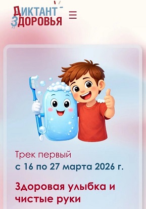 С 16 по 27 марта 2026 года Роспотребнадзор запускает первый тематический трек Всероссийской санитарно-просветительской акции «Диктант здоровья» — «Здоровая улыбка и чистые руки».