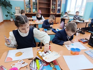 Орлята России под руководством классных руководителей и активистов Движения Первых проявили свою фантазию и творческие способности в конкурсе рисунков «Наш -Космос» и в изготовлении поделок .