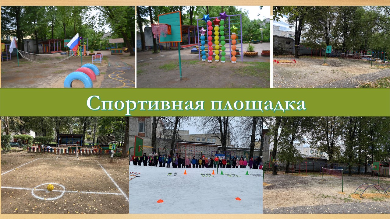 Учреждение имеет большую прилегающую территорию, которая обнесена забором из металлической сетки высотой 1,5 м. На земельном участке ДОУ расположены игровые площадки с верандами и малыми архитектурными формами, спортивными пособиями. Для развития двигательной активности и организации спортивных игр имеется спортивная площадка. Участок ДОУ озеленен деревьями и кустарниками, разбиты клумбы с цветами.